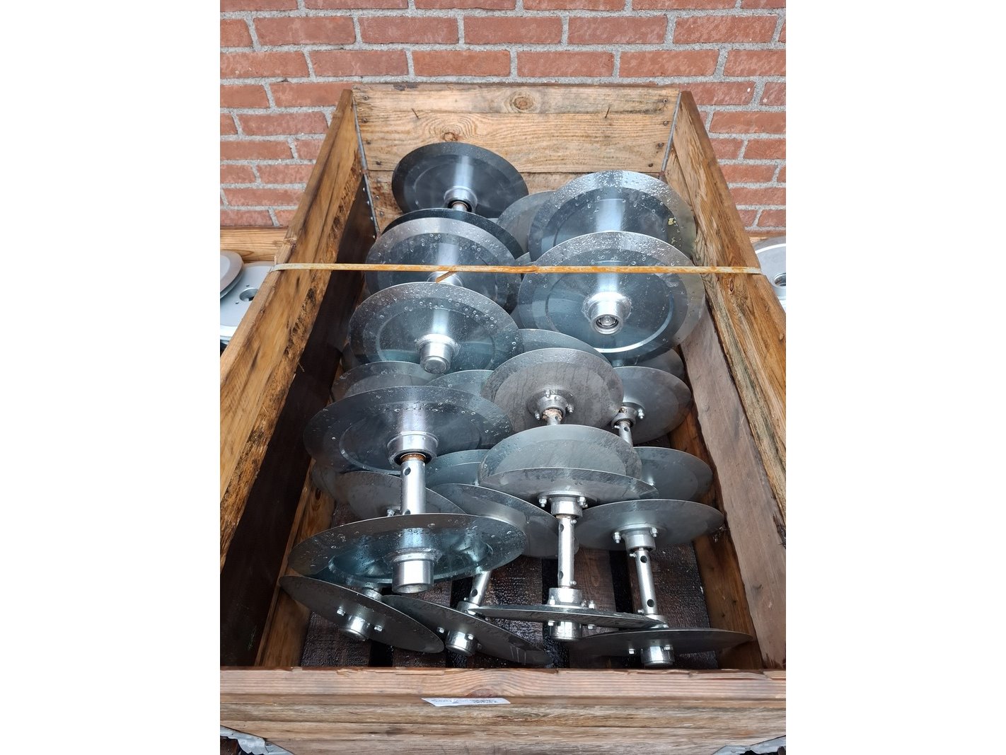 Product: Pallet metalen bemesterschijven Specificaties: gemonteerd per 2, diam ca 35cm