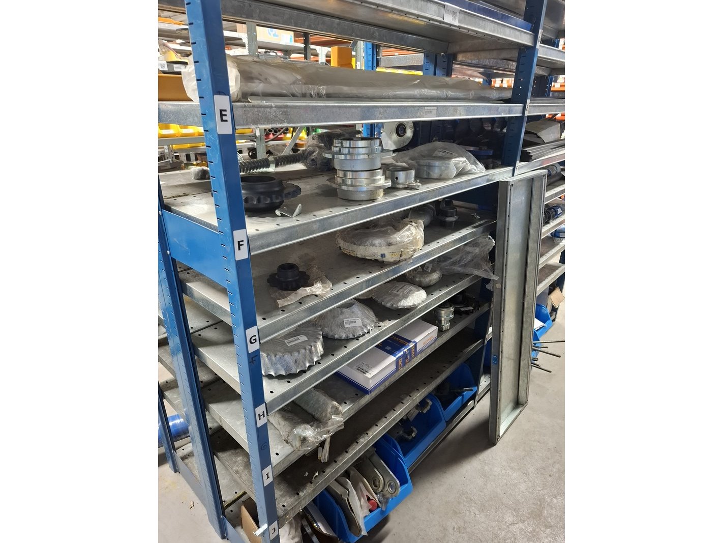 Product: Partij onderdelen Goweil Specificaties: o.a. tandwielen, beplating, ketting, etc. (1mtr dubbelzijdige stelling)