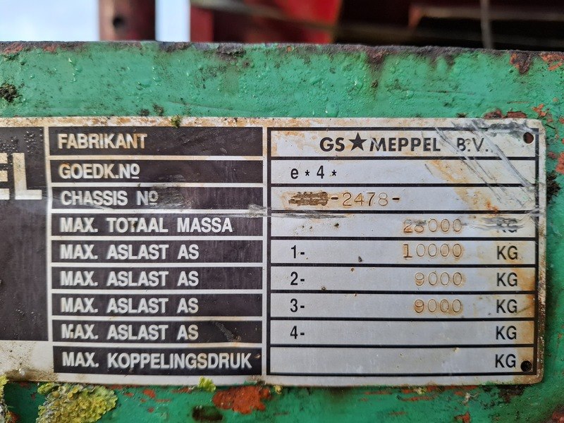 Merk: GS Meppel Product: Landbouwwagen Afmeting: lxbxh ca 647x252x106cm Specificaties: geen kenteken, staat geruime tijd stil, verdere staat onbekend, (zonder betonwasser, dit is kavel 320)