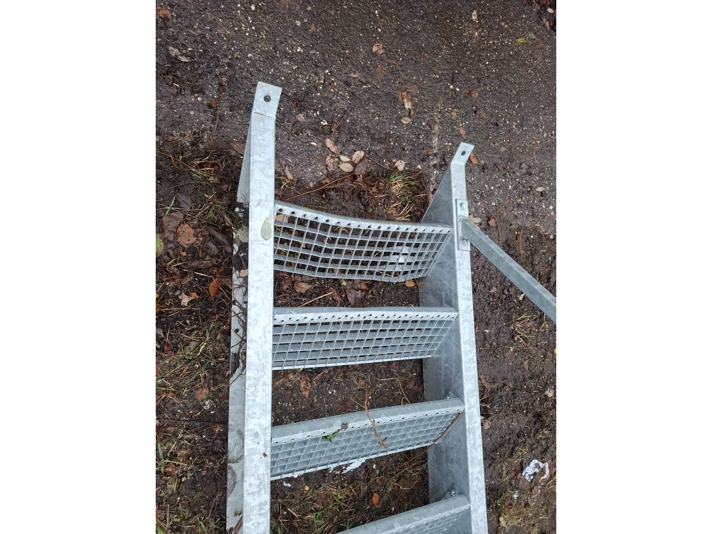 Product: Gegalvaniseerde trap met bordes Afmeting: lxb ca 650x75cm