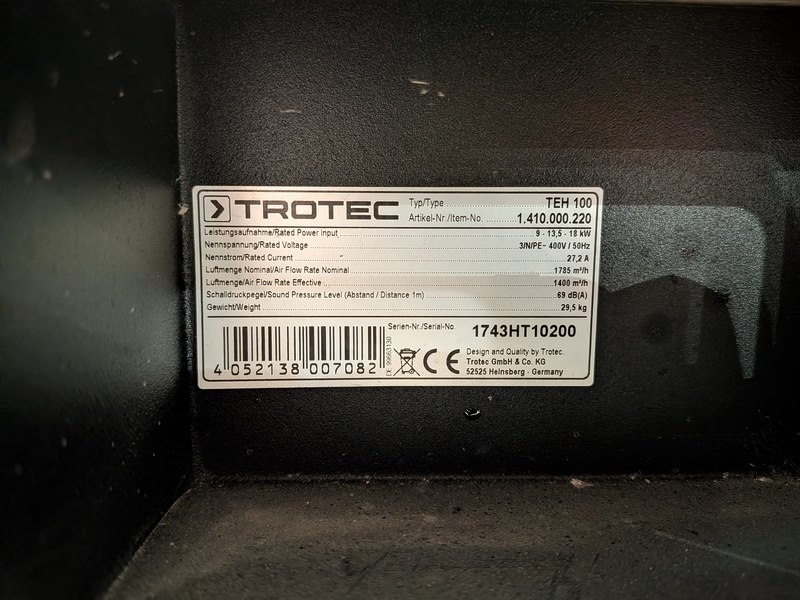 Merk: Trotec Product: Elektroheater 18kW 400V BouwJaar: 2017