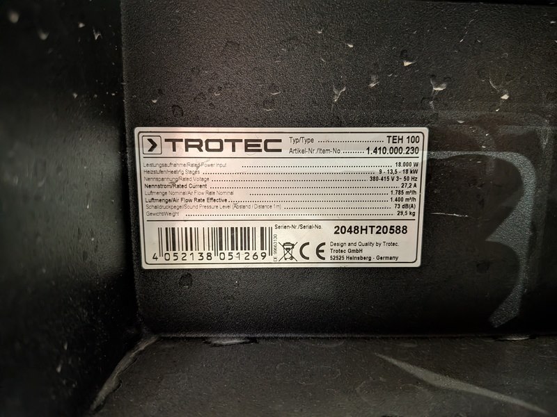Merk: Trotec Product: Elektroheater 18kW 400V BouwJaar: 2020