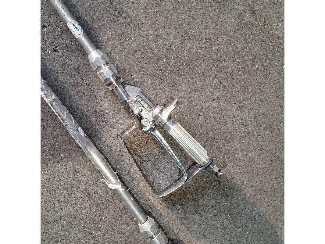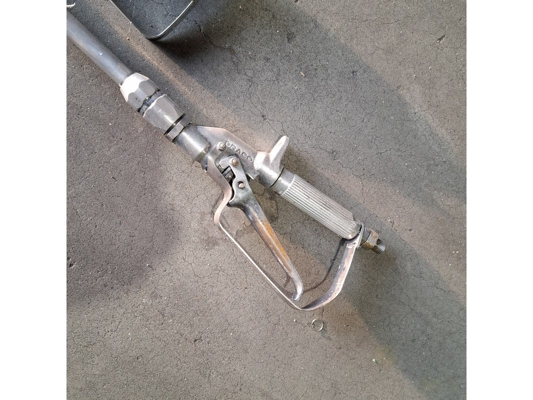 Merk: Graco Product: Airless spuit 2,3L 230V BouwJaar: 2016 Specificaties: Inclusief verlengd pistool Graco, 90 cm, bj 2022 en verlengd pistool Graco 180 cm, bj 2014