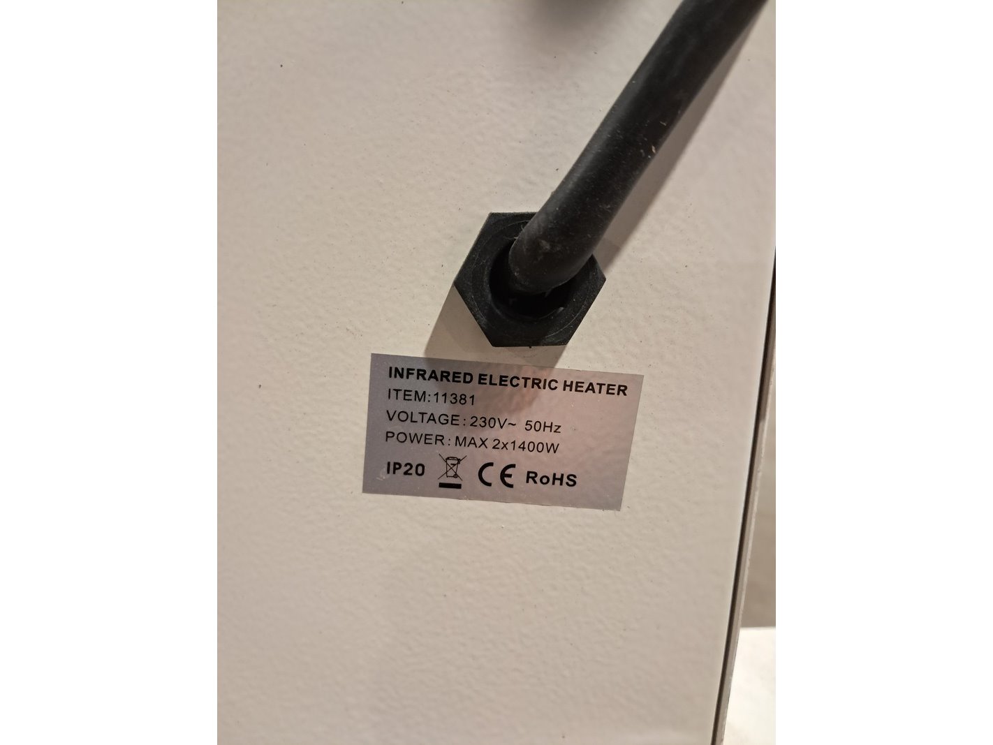 Merk: Ningbo Vertak Product: Elektroheater infrarood 3kW 230V (Red rad) BouwJaar: 2022