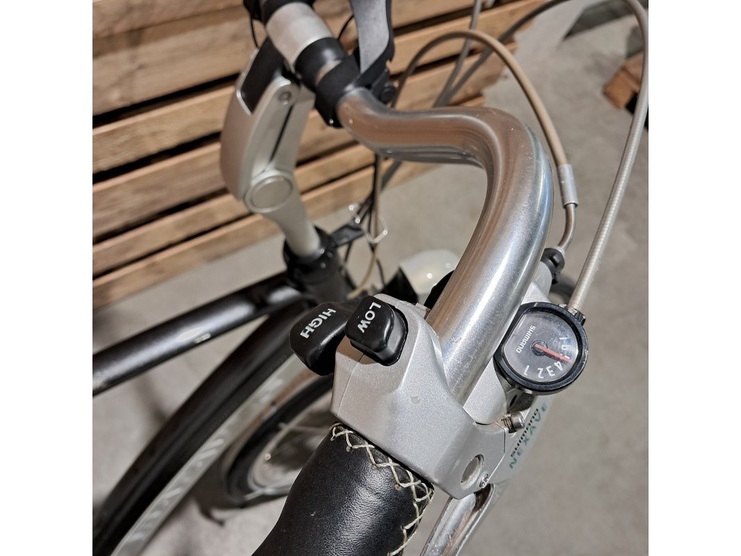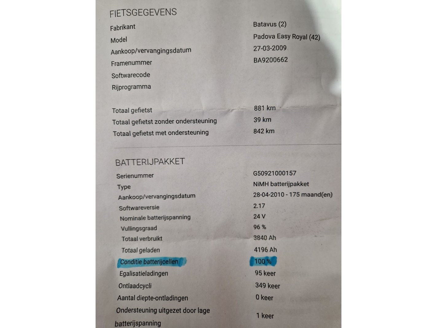 Merk: Batavus Product: Elektrische fiets Kleur: Zwart Materiaal: Aluminium Afmeting: 61 cm 28 inch Conditie: Gebruikt Specificaties: De accu is eens vervangen, waardoor de kilometerstand op de teller niet klopt. Dit is veel minder dan wat ermee gefietst is (zie accurapport). Wordt compleet geleverd met acculader, rapport en afneembare display.