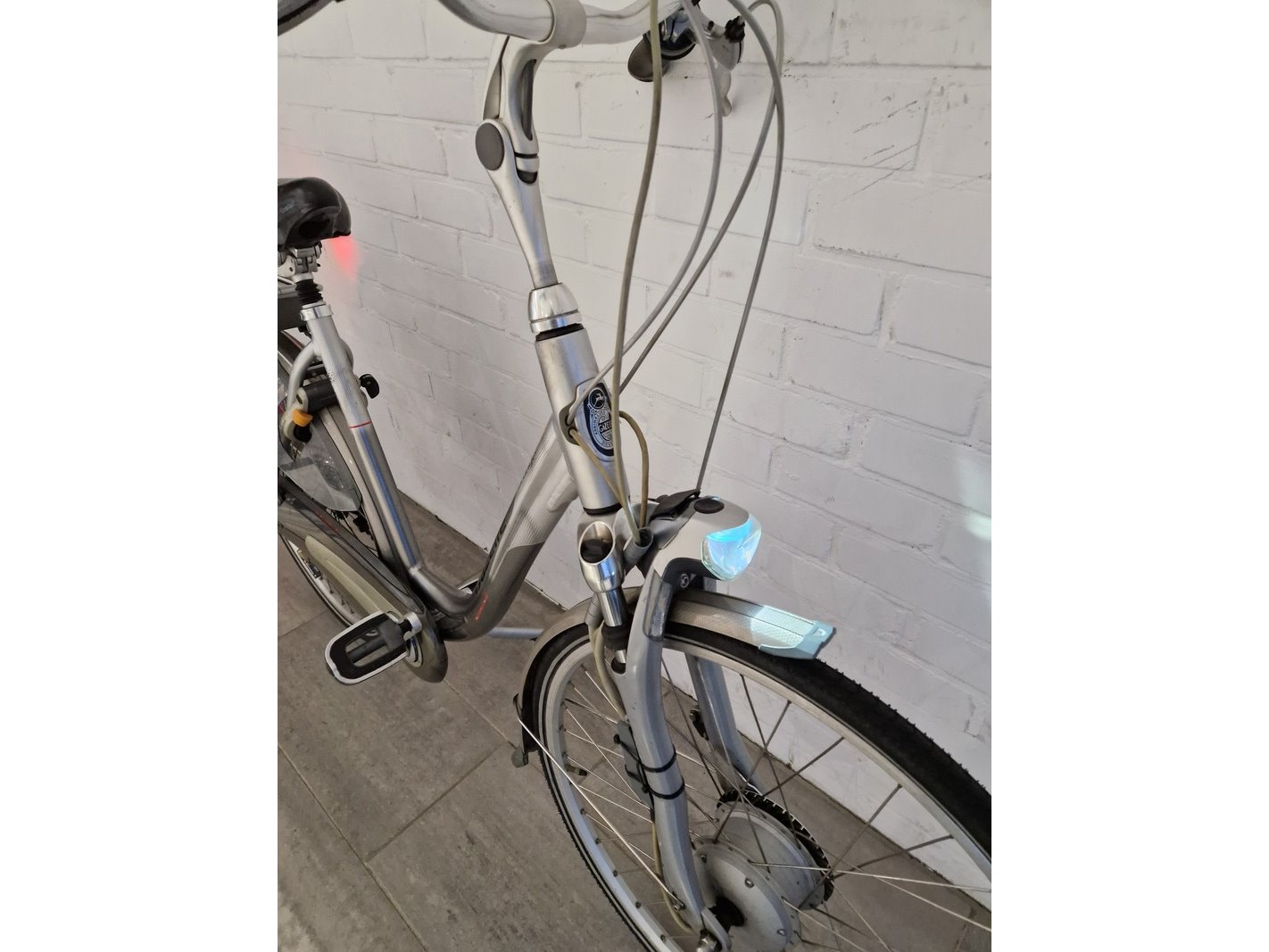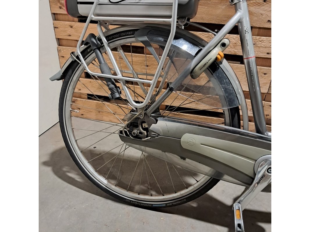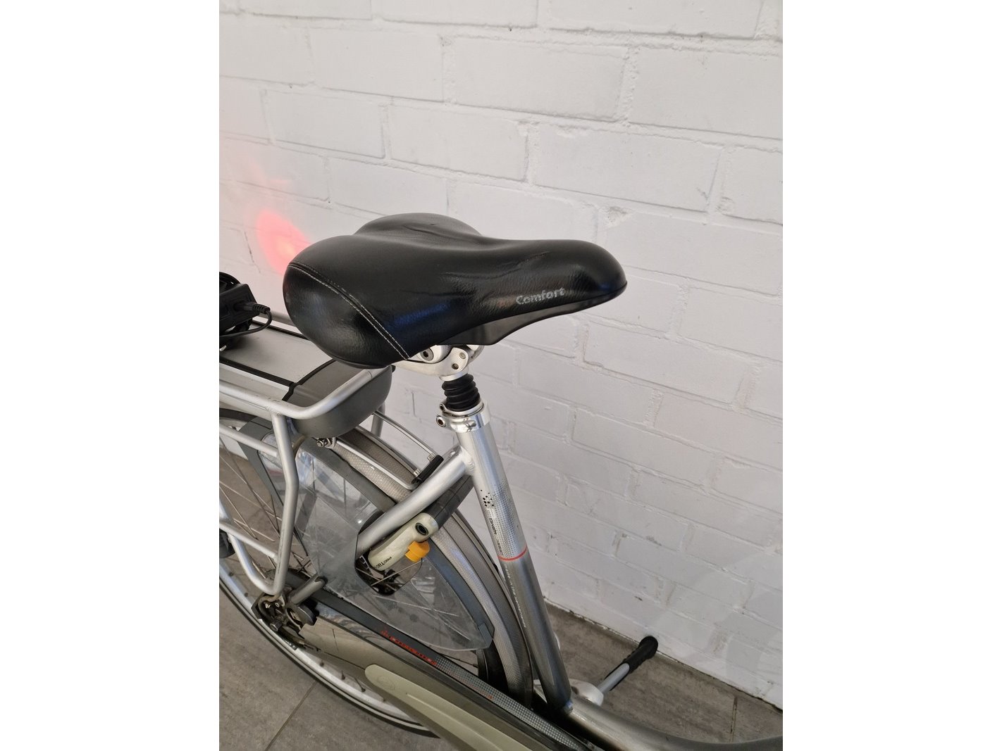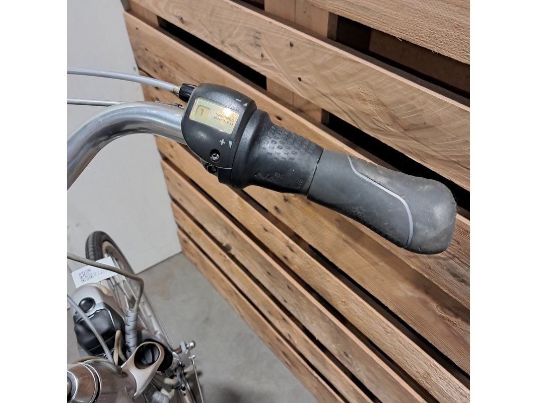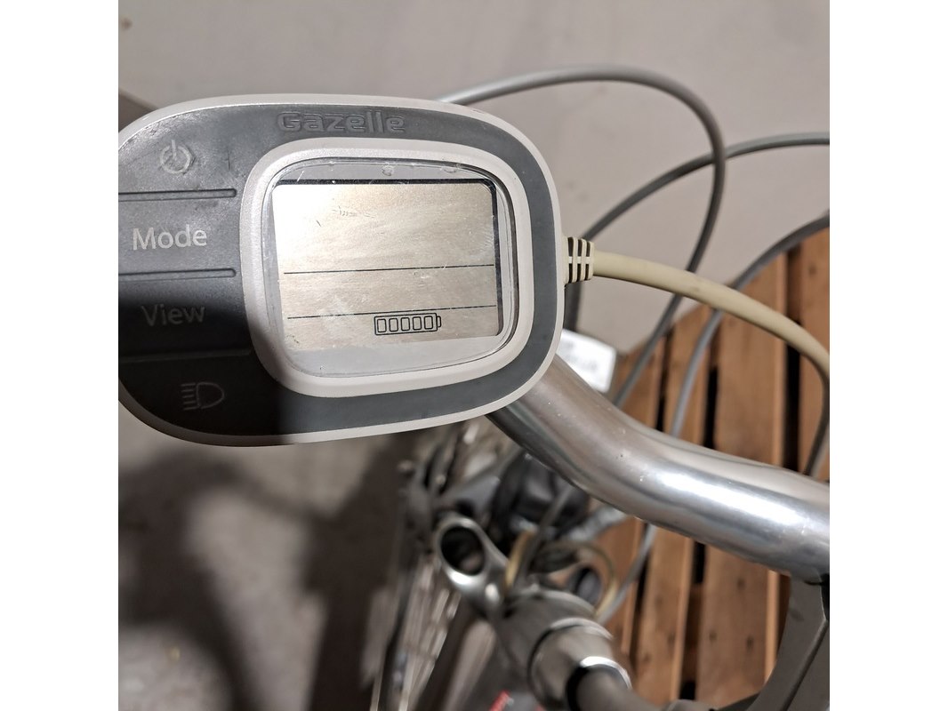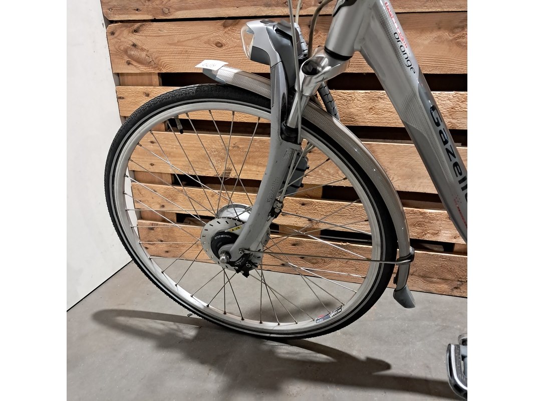 Merk: Gazelle Product: Elektrische fiets Kleur: Grijs / Chroom Materiaal: Aluminium Afmeting: 28 inch Conditie: Gebruikt Specificaties: Goedwerkende e-bike Compleet met acculader