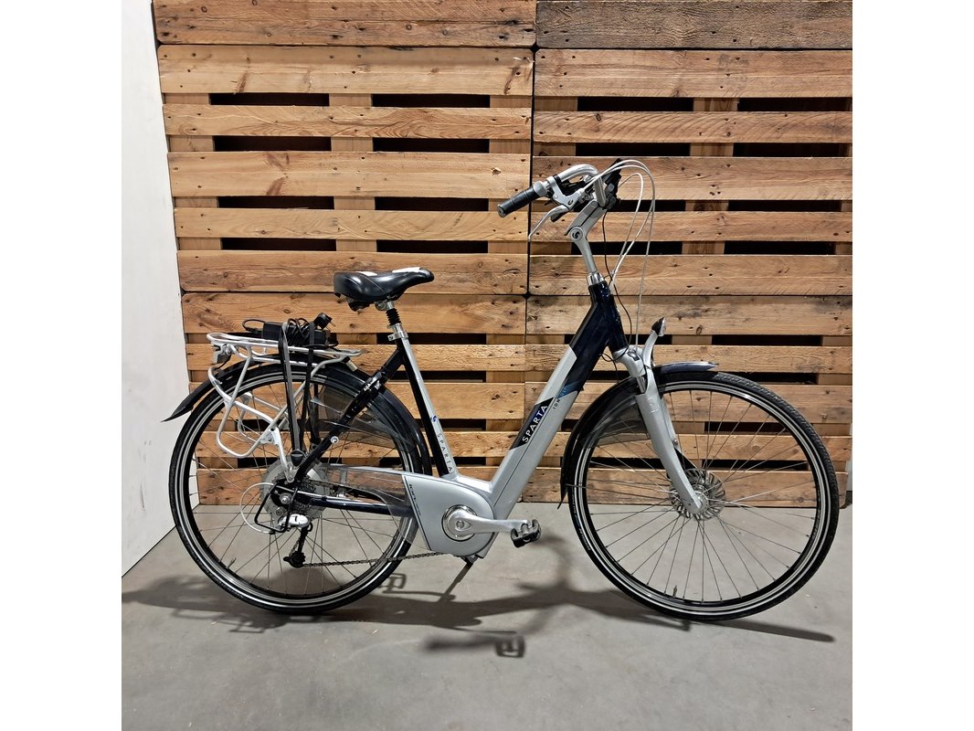 Merk: Sparta Product: Elektrische fiets Kleur: Grijs / Chroom Materiaal: Aluminium Afmeting: 28 inch Conditie: Gebruikt Specificaties: Elektrische fiets met accu in frame. Inclusief lader.