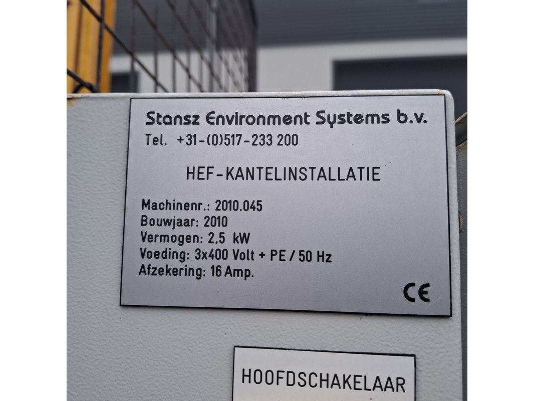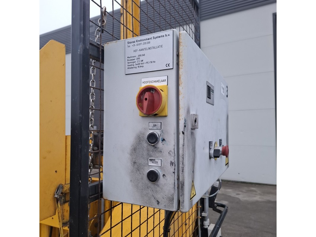 Merk: Stansz Product: Containerkantelaar/ laadsysteem BouwJaar: 2010 Conditie: Gebruikt Specificaties: Elektrische/hydraulisch Machinenr.: 2010.045 Bouwjaar: 2010 Vermogen: 2,5 kW Voeding: 3x400 Volt + PE / 50 Hz Afzekering: 16 Amp.