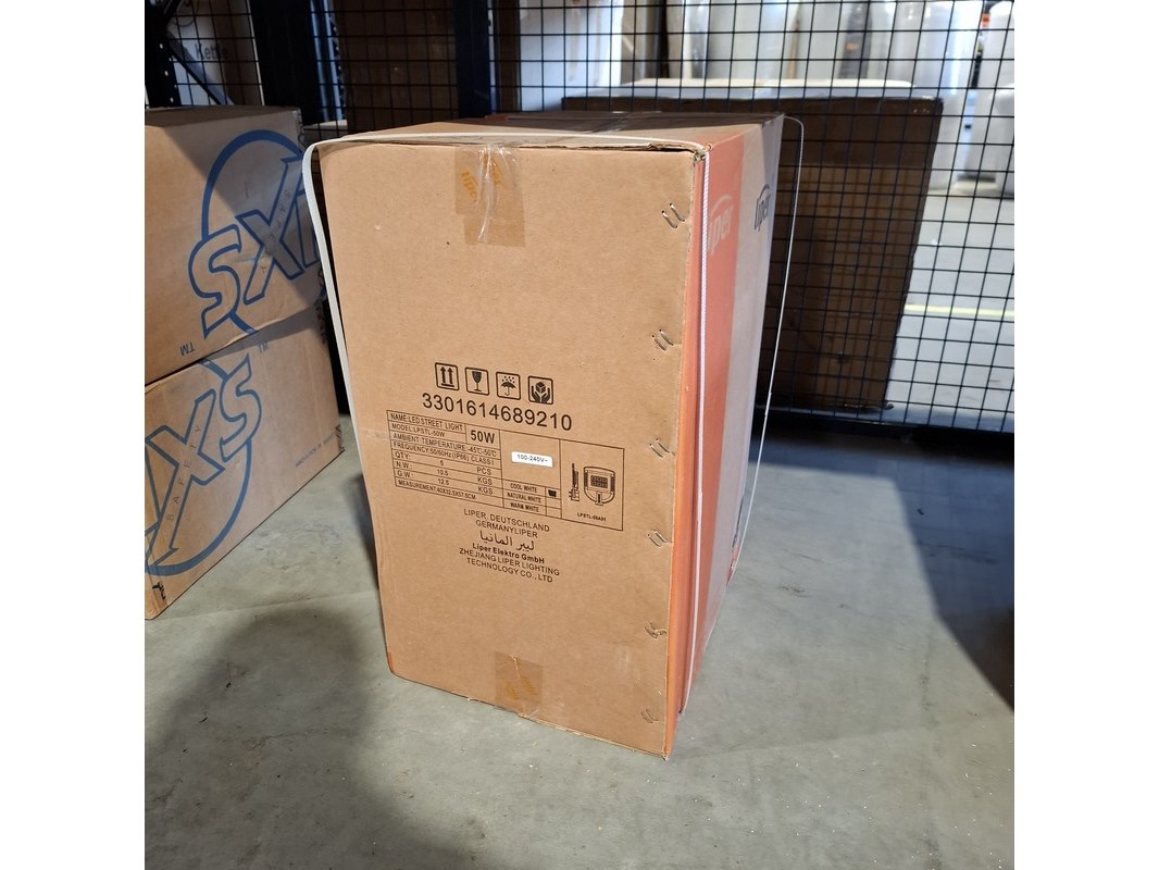 Merk: Liper Product: LED Straatverlichting 50W Kleur: Grijs Materiaal: Aluminium Afmeting: 373*80*300mm BouwJaar: 2024 Conditie: Nieuw Specificaties: 4.000lm 6000K IP66 IK07 110° stralingshoek