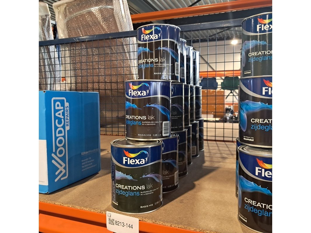 Merk: Flexa Product: Partij zijdeglanslak | 15 liter Afmeting: 15 liter Conditie: Nieuw Specificaties: Partij Flexa zijdeglanslak van goede kwaliteit, 15 liter RAL 9016