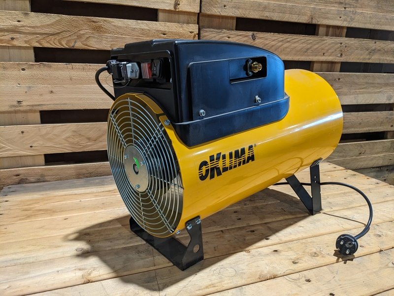 Merk: Oklima Product: Gasheater Kleur: Geel Materiaal: Staal Afmeting: Ca. 510x280x510mm BouwJaar: 2024 Conditie: Gebruikt Specificaties: Elektronische ontsteking, 15-31 kW capaciteit, in kCal 13000-27000, op propaan of butaan, verbruik max 2,014 kg/h bij 1.5 bar, geleverd zonder thermostaat. Incl. 1,5m gasslang en drukregelaar. Ideaal voor kleinere ruimten