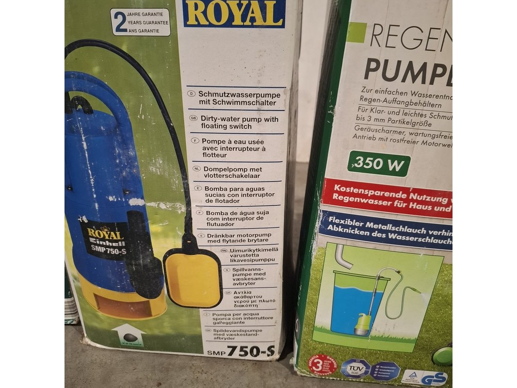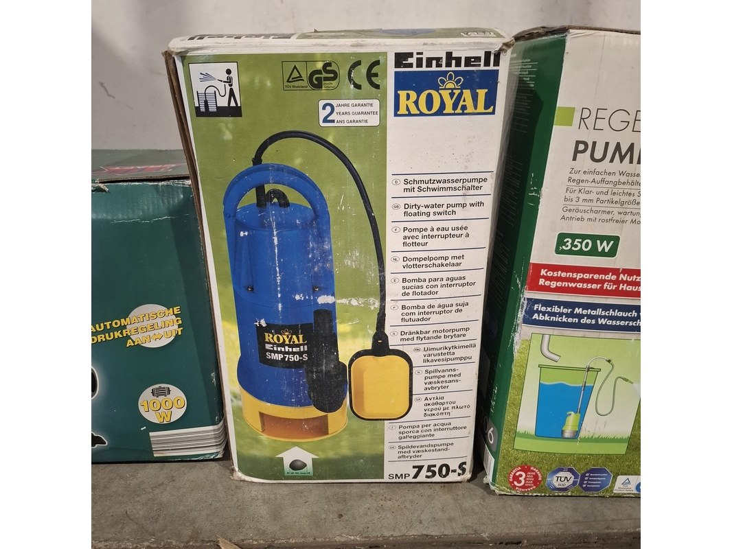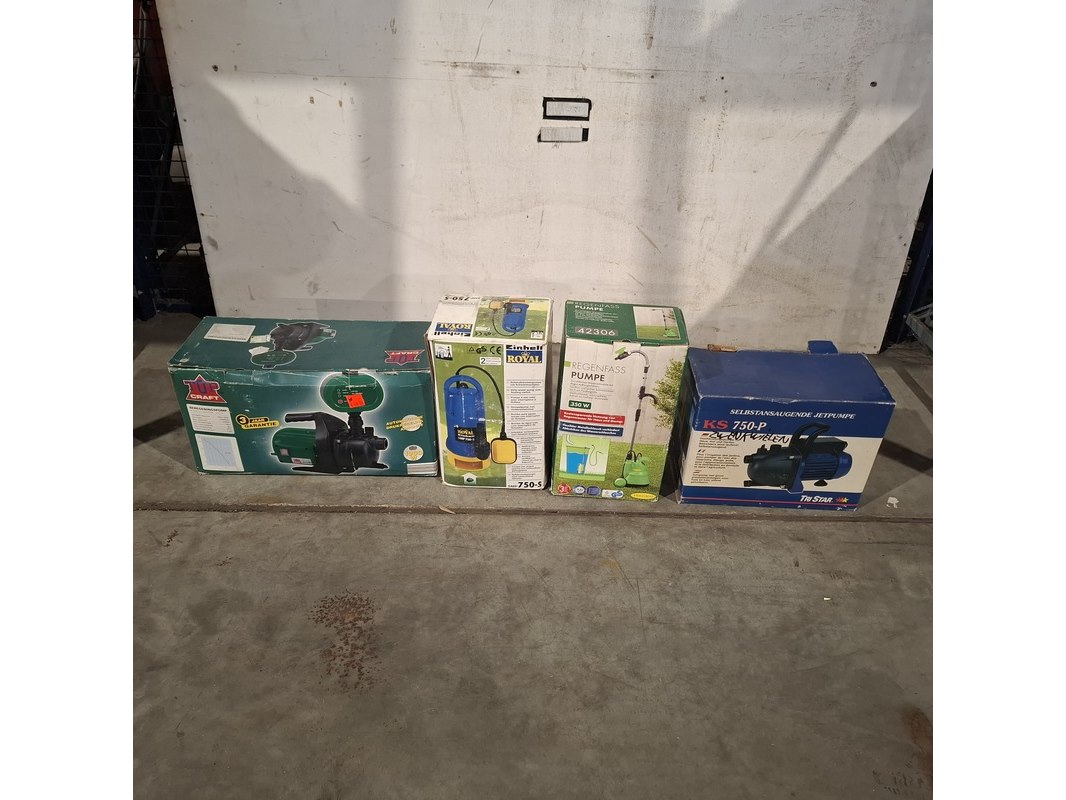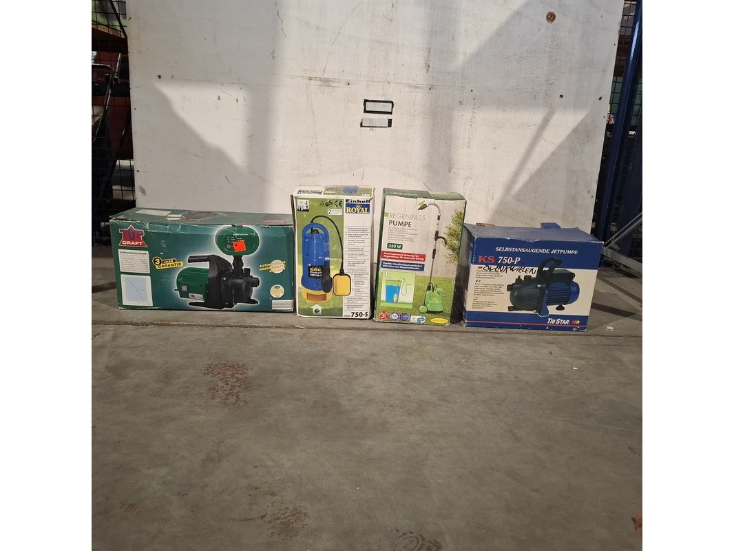 Product: Waterpompen Conditie: Gebruikt Specificaties: Bestaande uit: 1 x Speroni Type: KS 750/P 1 x regenwaterpomp 350W 1x Einhell 750W 1 x Top Craft 1.000W