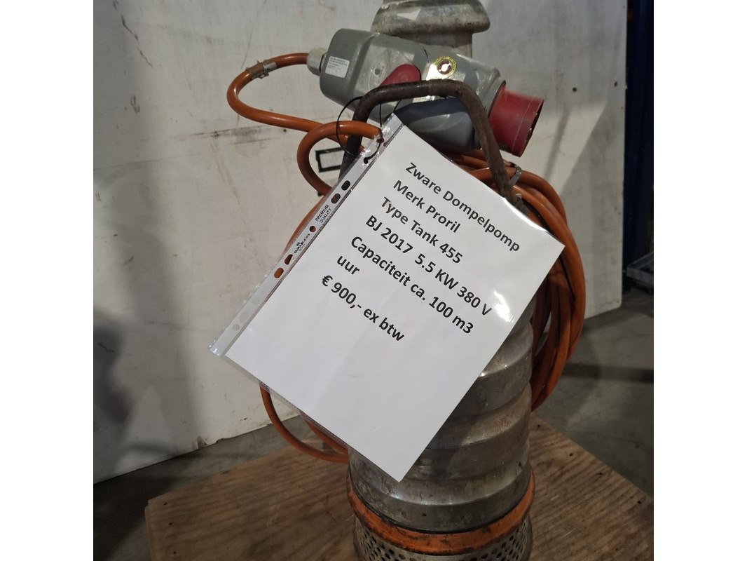 Merk: Proril Product: Dompel pomp BouwJaar: 2017 Conditie: Gebruikt Specificaties: Vermogen: 5,5 Kw 400 Volt Capaciteit: 100m3 uur