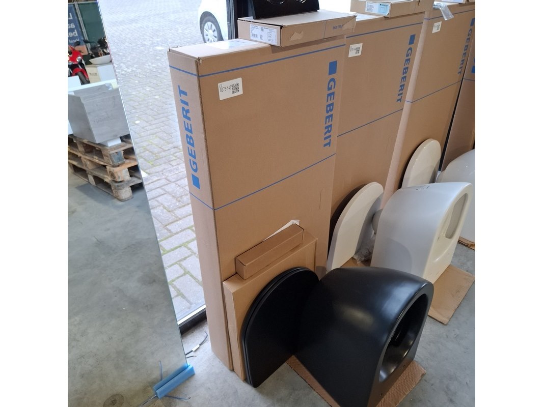 Merk: Geberit/Solar Product: Toilet-set Kleur: Mat zwart Specificaties: 1x Geberit UP100, (458.103.00. 2), 1x Sigma 01 bediening, (115.770DW.5) zwart, 1x Balder wandcloset, rimfree, matzwart, 1x zitting/deksel met softclose en quick release