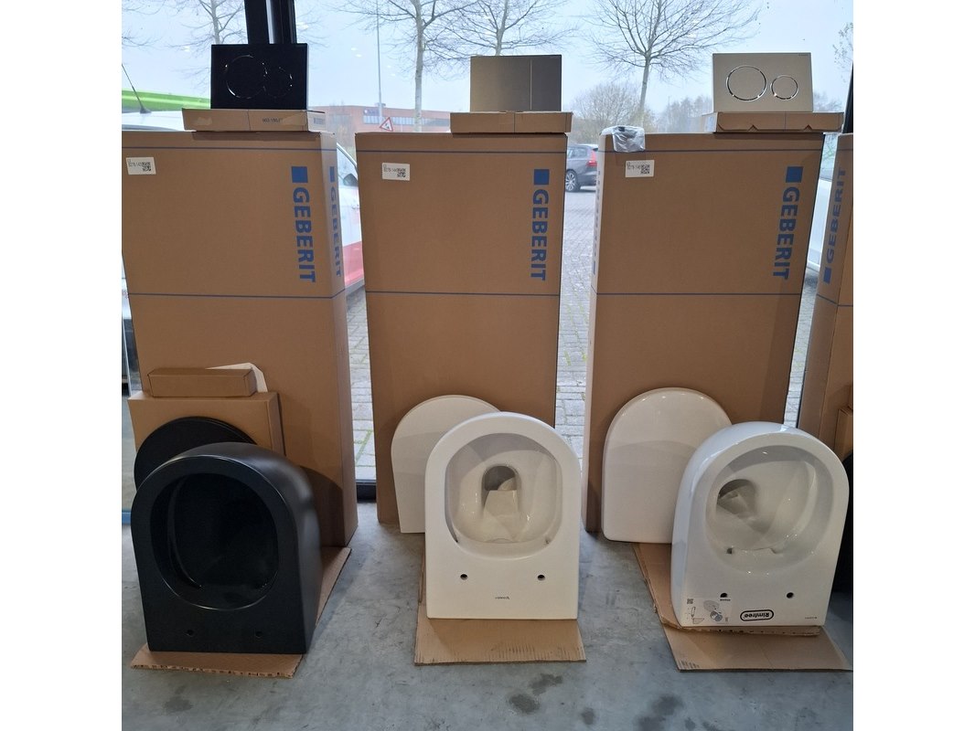 Merk: Geberit/Duravit Product: Toilet-set Kleur: Mat wit Specificaties: 1x Gebrit UP320, (111.308.00.6), 1x Geberit bediening, (242.813.FW.1), rvs geborsteld, 1x wandcloset, Duravit D-NEO, matwit, (2577092600), 1x zitting/deksel, Duravit D-NEO, met softclose en quick release