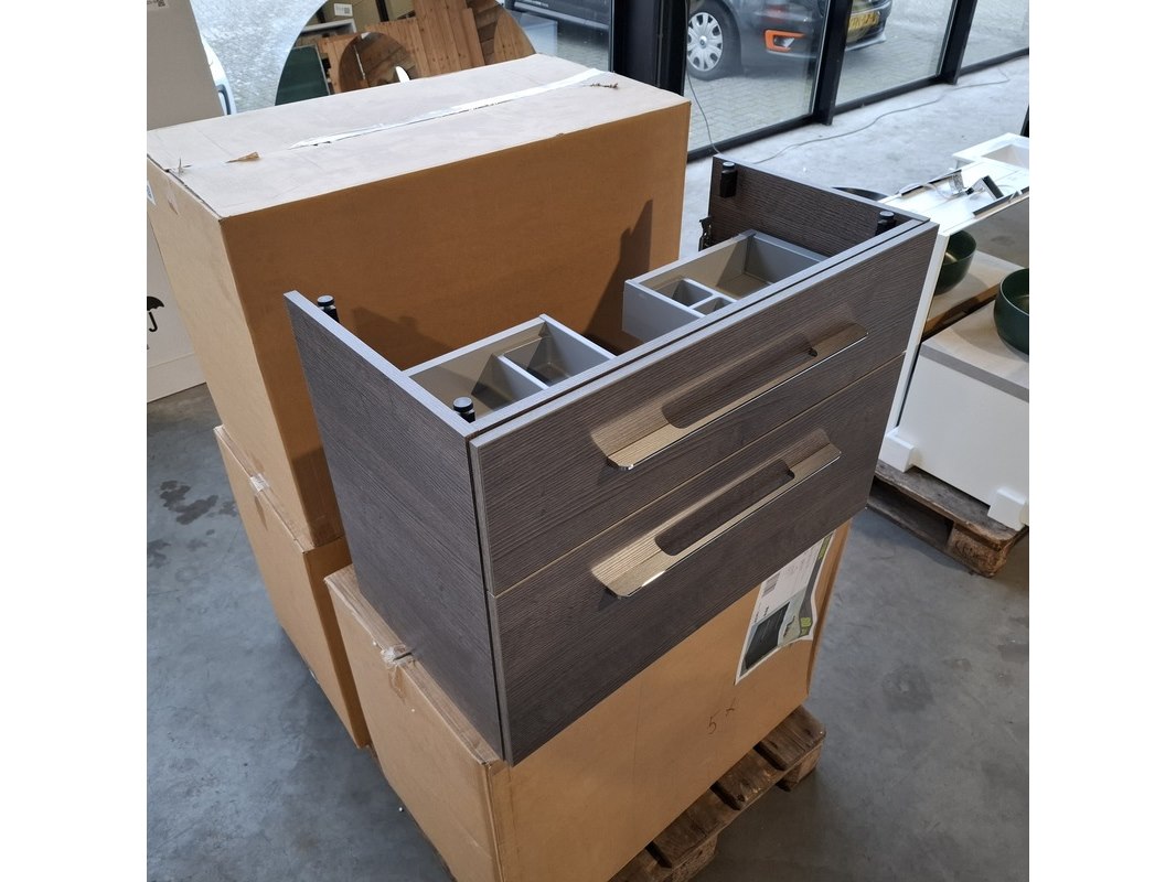 Merk: Vittoria Product: Badmeubel Kleur: Grijs Afmeting: 80x41.8cm Specificaties: 2 lades met softclose, met lade-verdeler, chromen grepen, hoogte 54cm