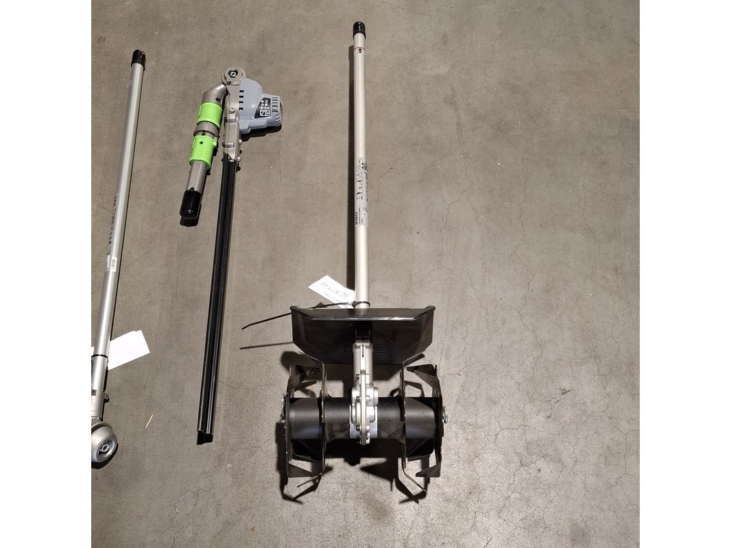Merk: EGO Product: Opzetstuk (heggenschaar, bosmaaier en cultivator) Conditie: Nieuw Specificaties: Bestaande uit: Cultivator CTA9500, bj 2022 Bosmaaier BCA1200, bj 2024 Heggenschaar PTX5100, bj 2024
