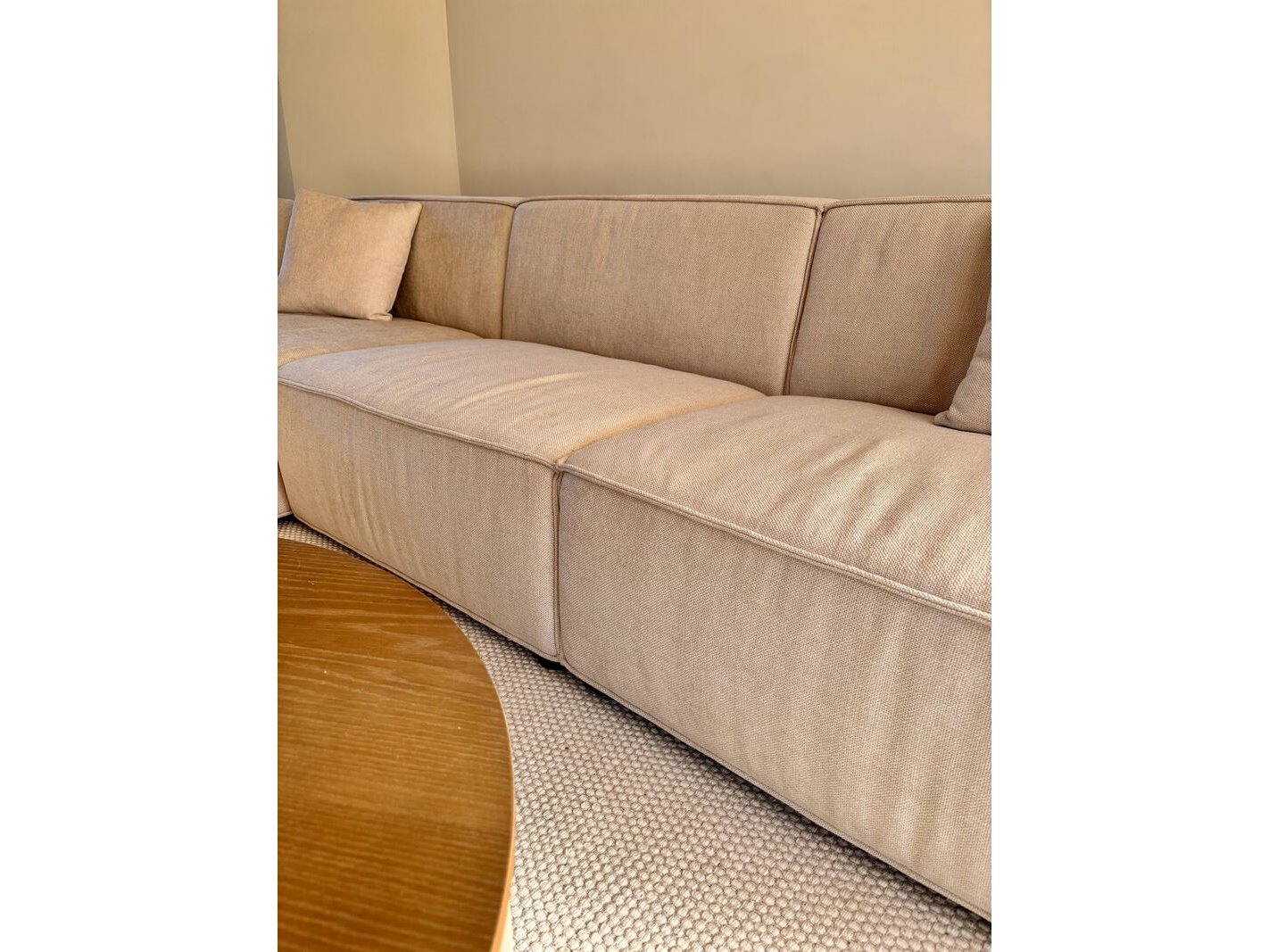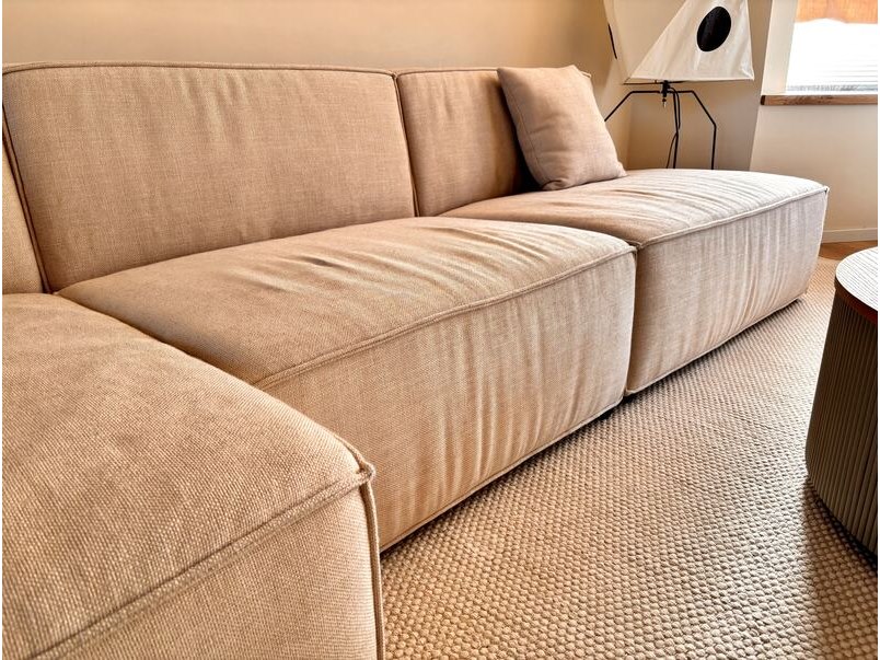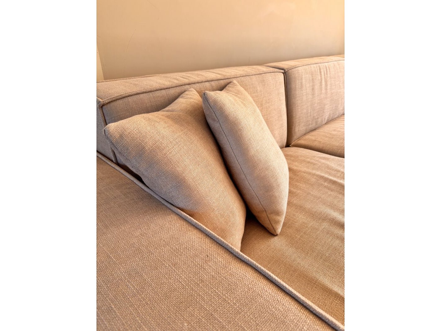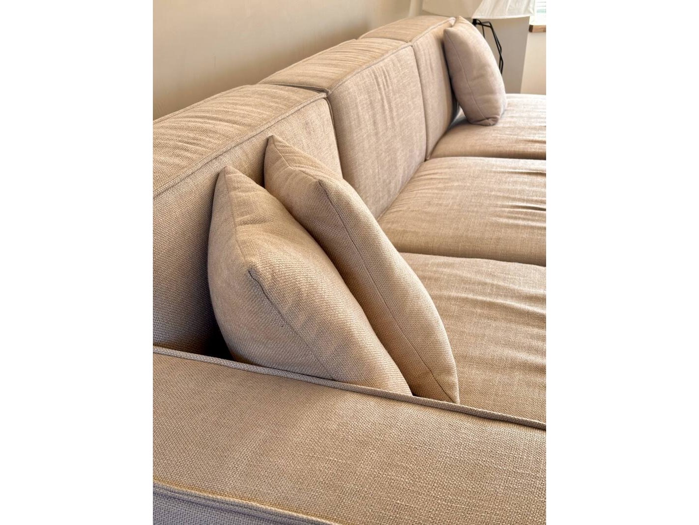 Product: Elementen bank in rechtse opstelling Kleur: Beige Materiaal: Stof Afmeting: +- B295 x D95 (Lounge D125) x H76 cm, zithoogte 43 cm, Zitdiepte 68 (Lounge ZD 98) cm Conditie: Nieuw Specificaties: Nieuw. Bestaande uit drie losse elementen die “onzichtbaar” aan elkaar gehaakt kunnen worden. Dit betreft een nog zachtere uitvoering. Afmetingen elementen: Lounge rechts B115 x D95 x H76, Middenstuk B75 x D95 x H76, Eindstuk links B105 x D95 x H76) cm