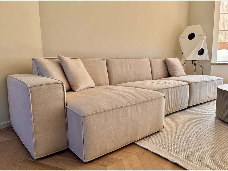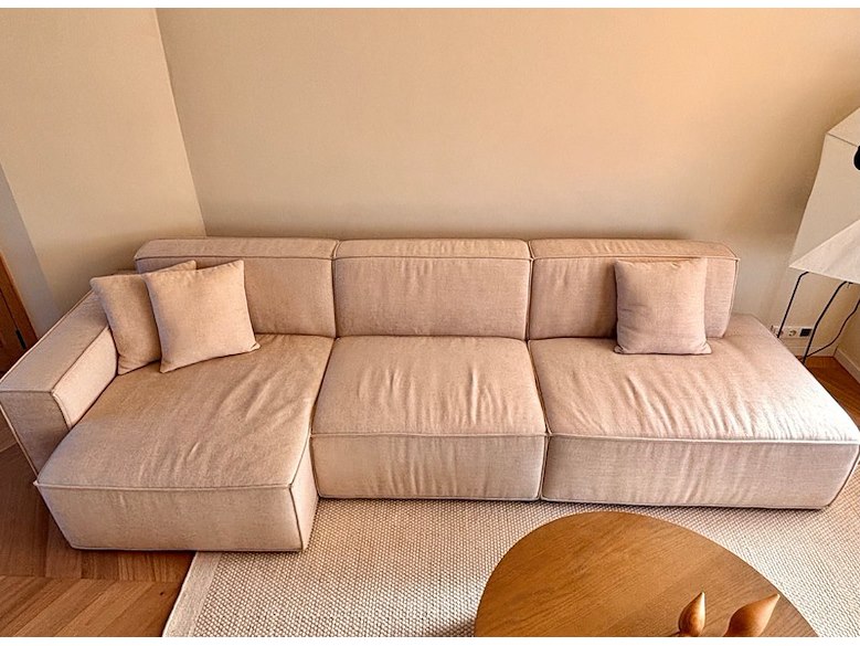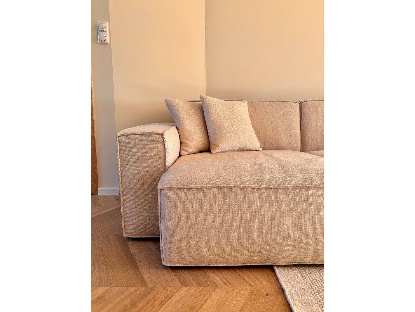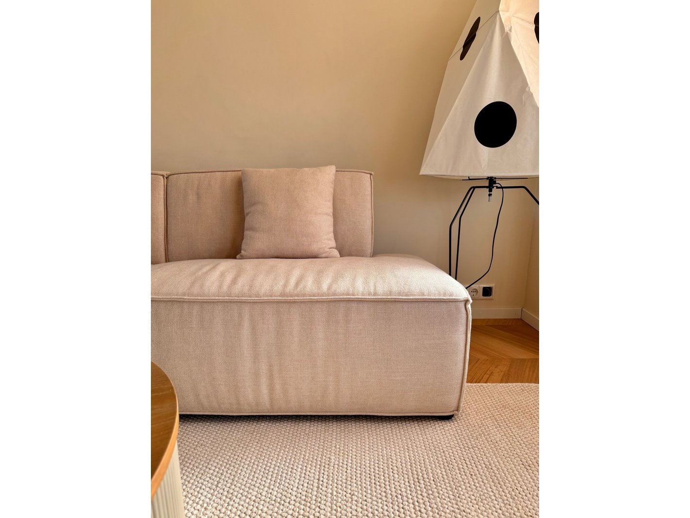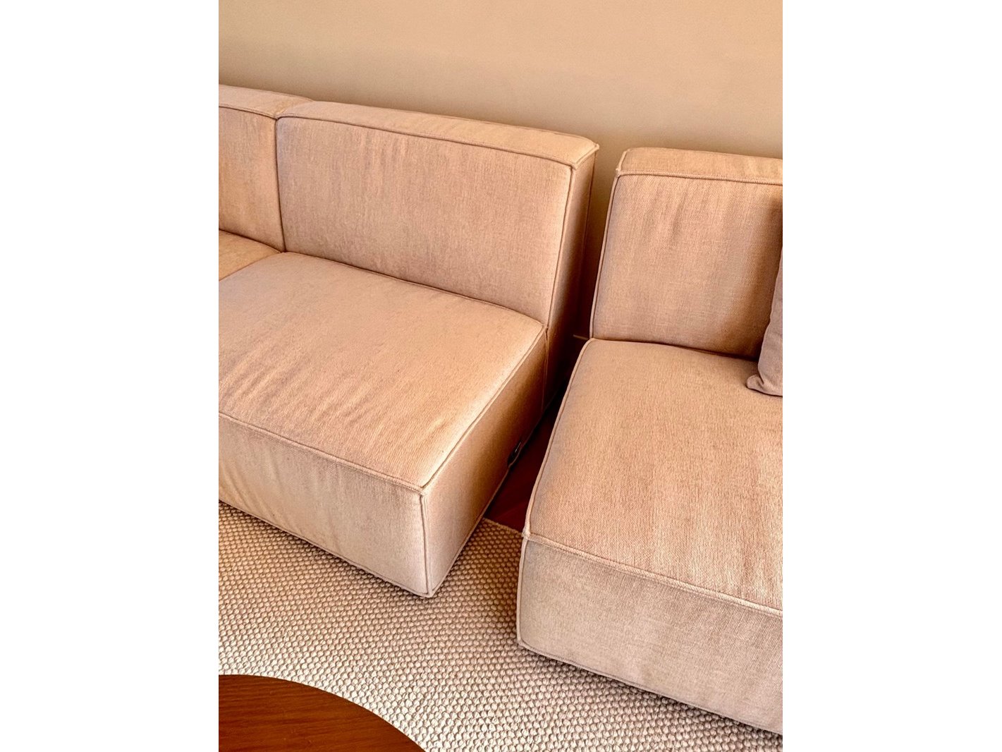 Product: Elementen bank in rechtse opstelling Kleur: Beige Materiaal: Stof Afmeting: +- B295 x D95 (Lounge D125) x H76 cm, zithoogte 43 cm, Zitdiepte 68 (Lounge ZD 98) cm Conditie: Nieuw Specificaties: Nieuw. Bestaande uit drie losse elementen die “onzichtbaar” aan elkaar gehaakt kunnen worden. Dit betreft een nog zachtere uitvoering. Afmetingen elementen: Lounge rechts B115 x D95 x H76, Middenstuk B75 x D95 x H76, Eindstuk links B105 x D95 x H76) cm