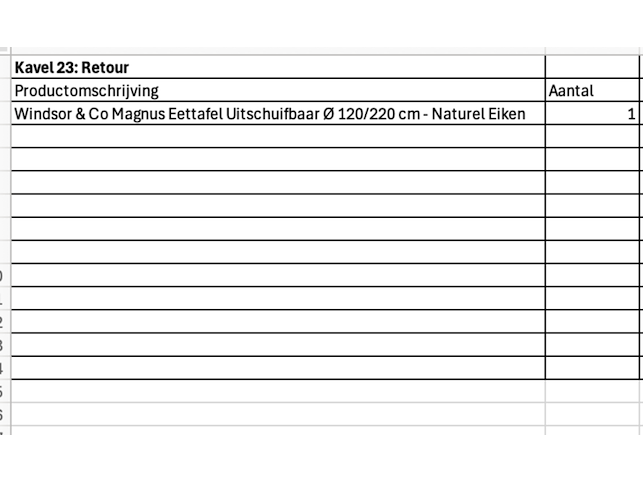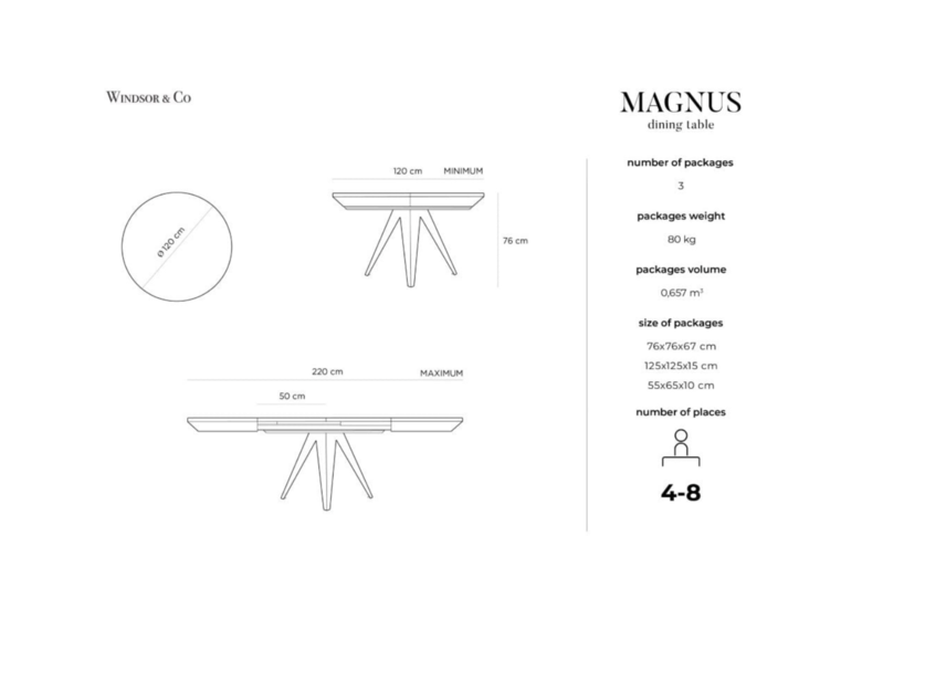 Merk: Windsor & Co Product: Uitschuifbare eettafel Afmeting: 120/220 cm Conditie: Nieuw Specificaties: De veelzijdige eettafel Magnus van Windsor & Co is een echte aanwinst door zijn stoere uitstraling en strakke design. Krijg je visite over de vloer? Geen enkel probleem voor deze uitschuifbare eettafel: je kunt hier gemakkelijk 8 mensen aan kwijt! Stoere eettafel van H 76 x Ø 120/220 cm Gemaakt van hoogwaardig eikenhoutfineer Uitgeschoven pas je gemakkelijk met 8 mensen aan! Het design van de poten geeft de tafel een industriële uitstraling. Functioneel retour