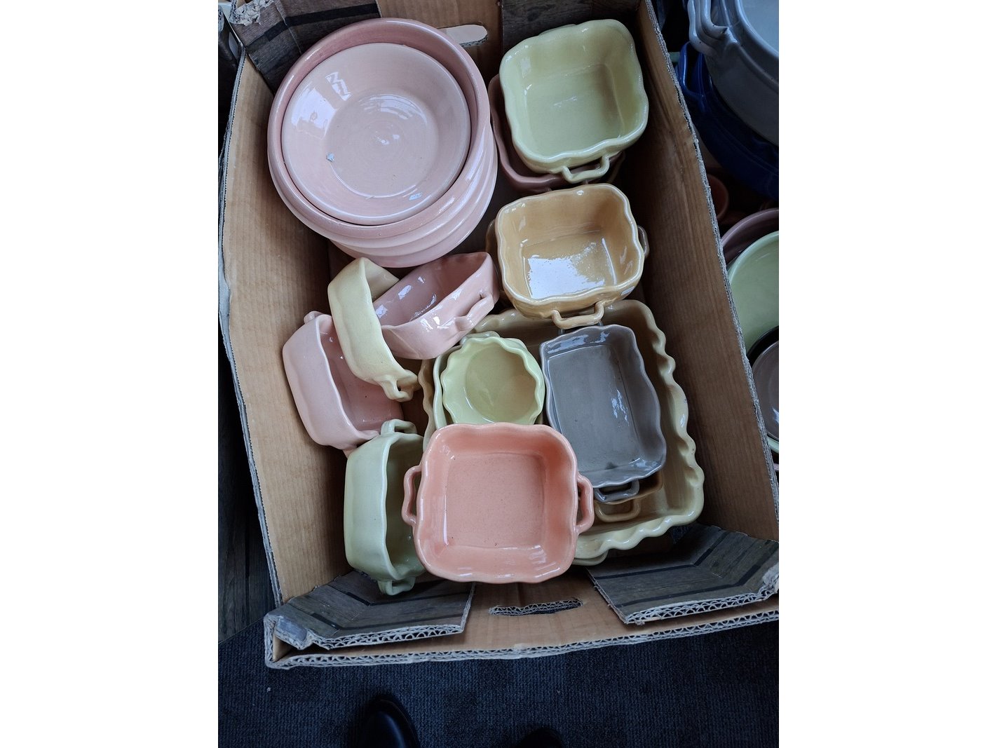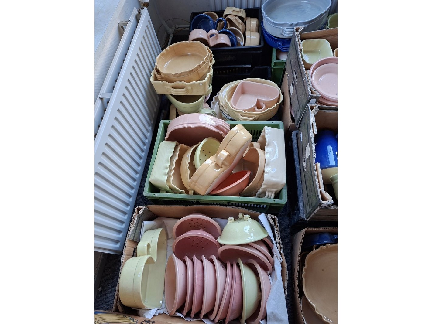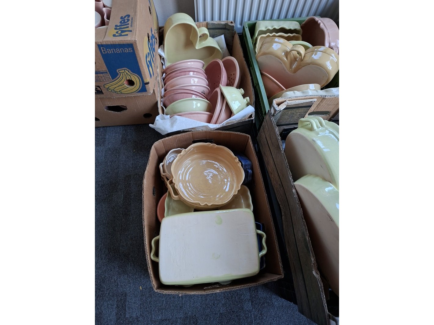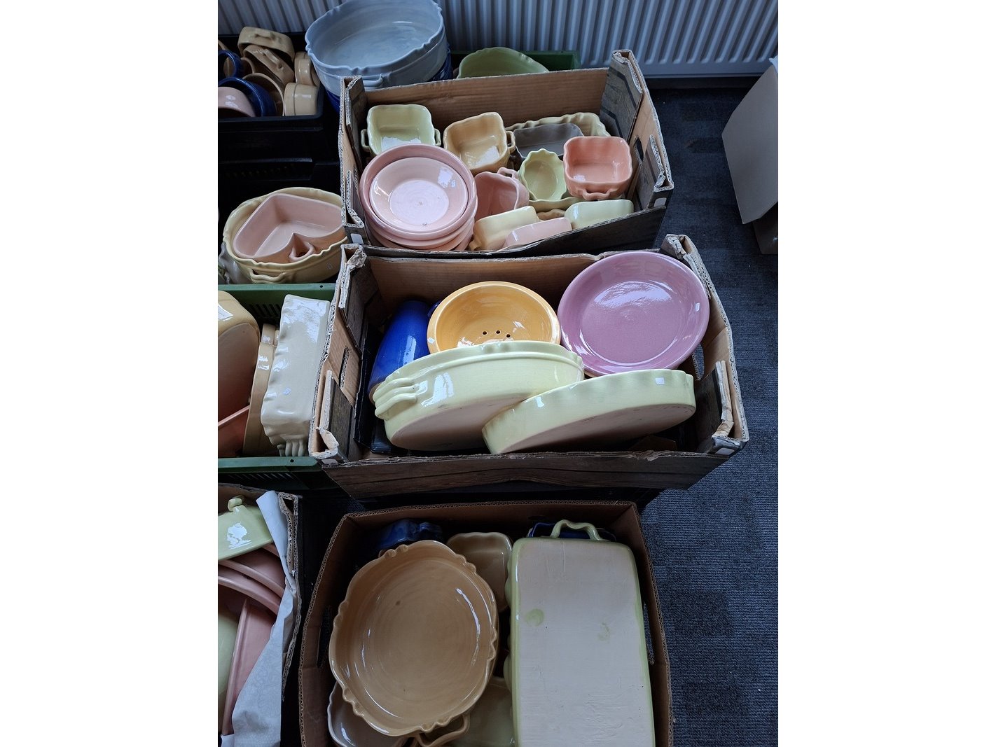 Ca. 200x frans aardewerk , terre de couleurs, o.a. schalen en kannen