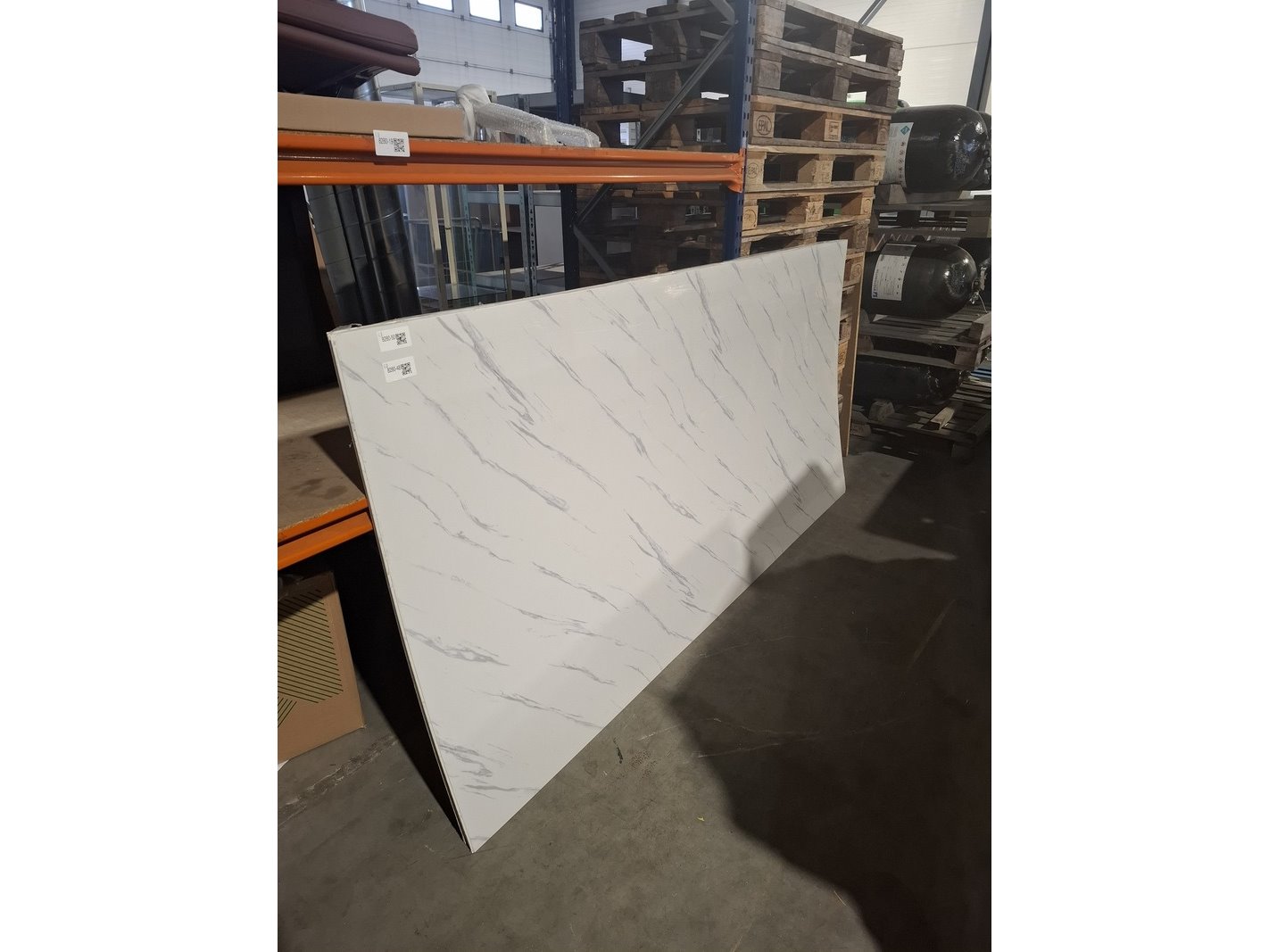 Product: PVC paneel Kleur: Marmerenlook Materiaal: PVC Afmeting: 245x122x0,3cm Conditie: Nieuw