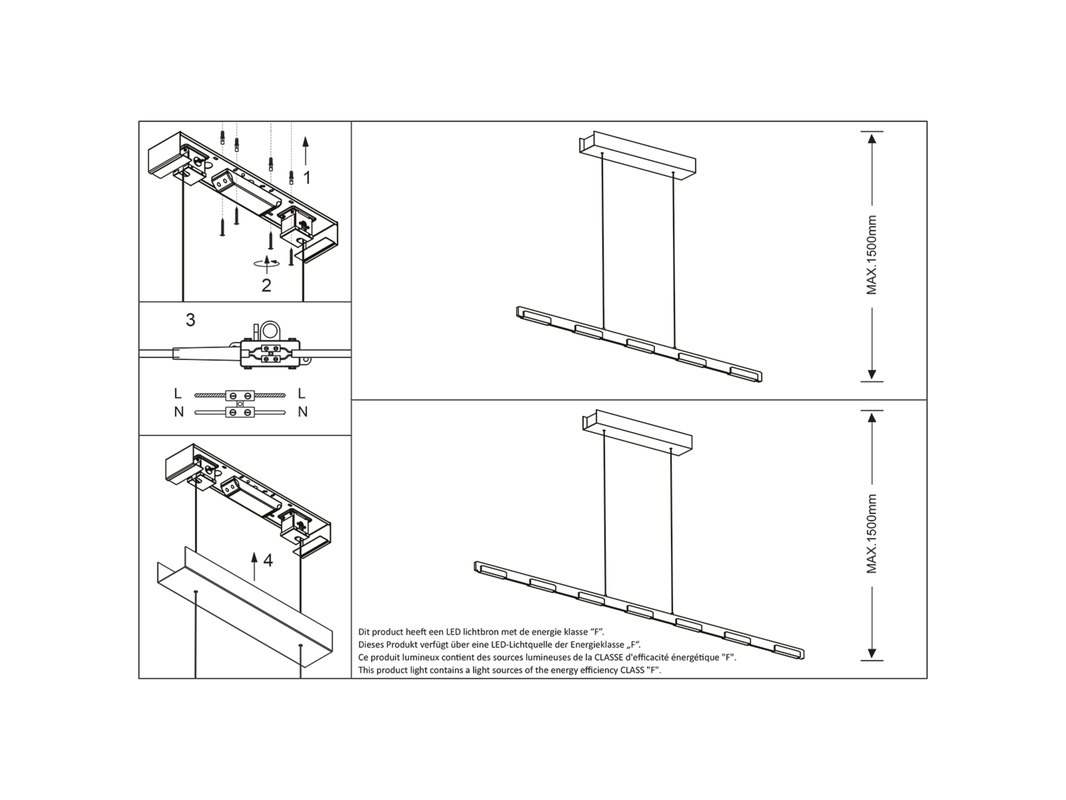 Merk: Steinhauer Product: Hanglamp Bloc 170cm Kleur: Zwart Materiaal: Metaal Afmeting: 170 breed en in hoogte instelbaar BouwJaar: 2025 Conditie: Nieuw Specificaties: Hanglamp Bloc 3297ZW Zwart met Cable lift. Met zijn minimalistische dunne ontwerp en subtiele verbredingen bij de lichtpunten onder, gemaakt van hoogwaardig aluminium, voegt deze hanglamp een eigentijdse touch toe aan jouw interieur. Voorzien van een vervangbare LED Module van 4x6 Watt boven en 7x6 Watt onder, levert deze lamp een maximaal lumen van 6600 met een warme kleurtemperatuur van 2700 Kelvin. Het minimalisme van het ontwerp komt samen met geavanceerde verlichtingstechnologie om een perfecte balans te creëren tussen vorm en functie. De hanglamp is dimbaar met een externe dimmer (niet inbegrepen), waardoor je de sfeer naar wens kunt aanpassen. Dankzij de in hoogte verstelbare functie van 10 tot 130 centimeter met de handige cable-lift, kun je de lamp moeiteloos op de ideale hoogte instellen. Met een indrukwekkende lengte van 171 centimeter en 11 lichtpunten (7 aan de onderkant en 4 aan de bovenkant), straalt deze hanglamp zowel minimalistische klasse als functionele verlichting uit. Bestel de Bloc serie hanglamp nu online en ervaar de perfecte combinatie van modern design en geavanceerde verlichtingstechnologie