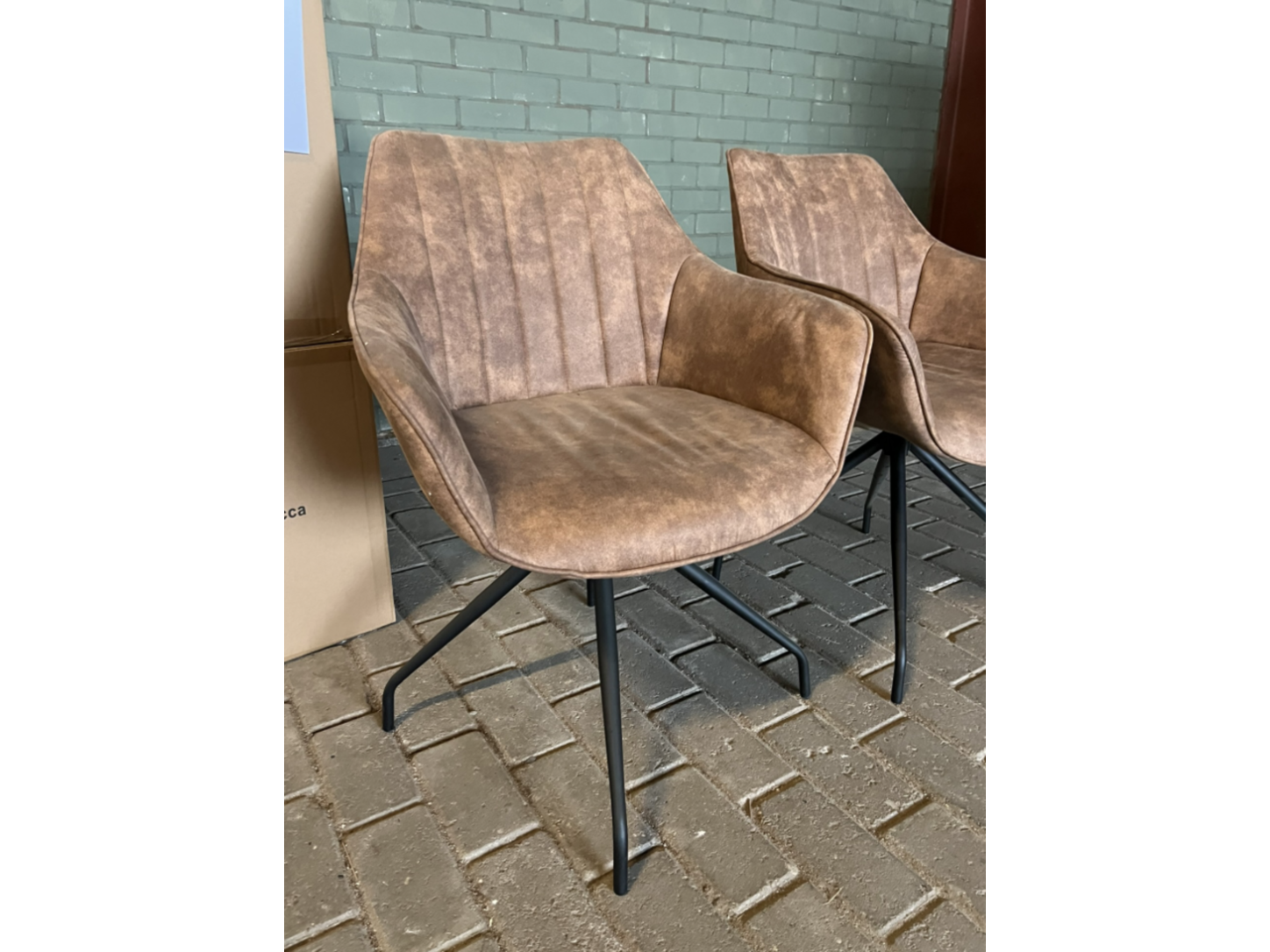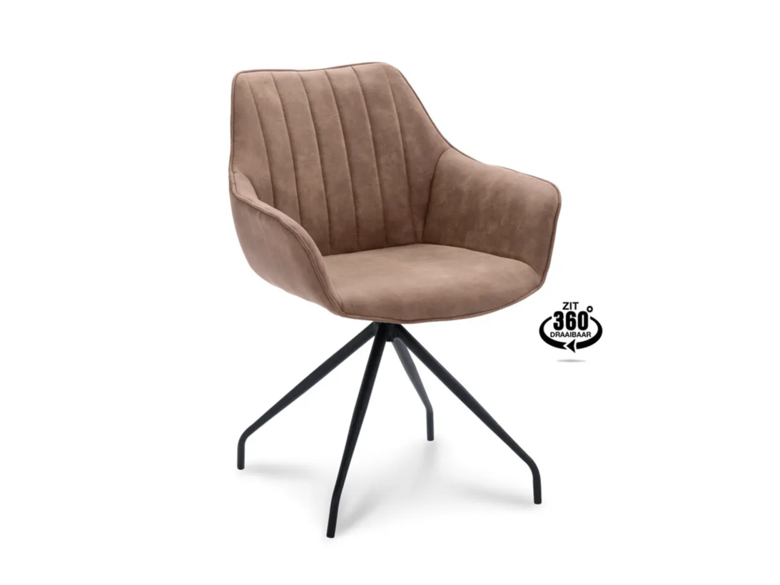 Merk: White Label Living Product: Eetkamerstoel Afmeting: 80x62x60 (hxbxd) Conditie: Nieuw Specificaties: Eetkamerstoel Brody met armleuningen is 360 graden draaibaar. De stoel is bekleed met een stoere en eigentijdse microvezel, in de kleur mocca. De eetkamerstoel heeft een industriële look en hij kenmerkt zich door een hoog zitcomfort. Door de donkere metalen poten krijgt model Brody ook een erg stoere look en is hij passend in vele interieurs. De rug van model Brody is uitgevoerd met een geruit stiksel, wat hem dan ook helemaal van deze tijd maakt. Functioneel retour