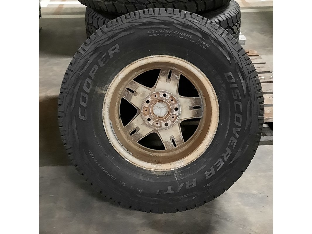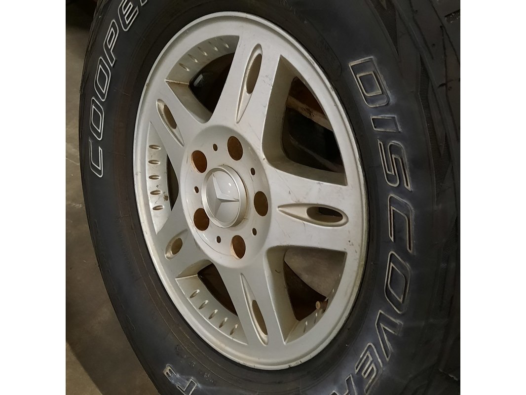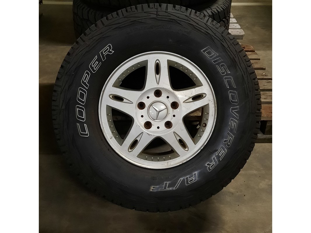 Merk: Mercedes-Benz Product: Band met velg Afmeting: LT265/75R16 Conditie: gebruikt Specificaties: De velgen hebben diverse beschadigingen. 1x naafdop ontbreekt. Verdere technische staat onbekend.