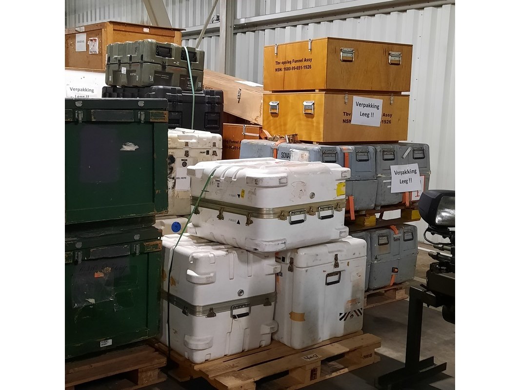 Product: Partij diverse transportkisten Afmeting: Diverse maten Conditie: gebruikt Specificaties: Bestaande uit verschillende transportkisten in diverse maten. Technische staat en compleetheid onbekend. Exclusief pallets.