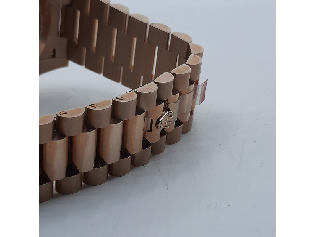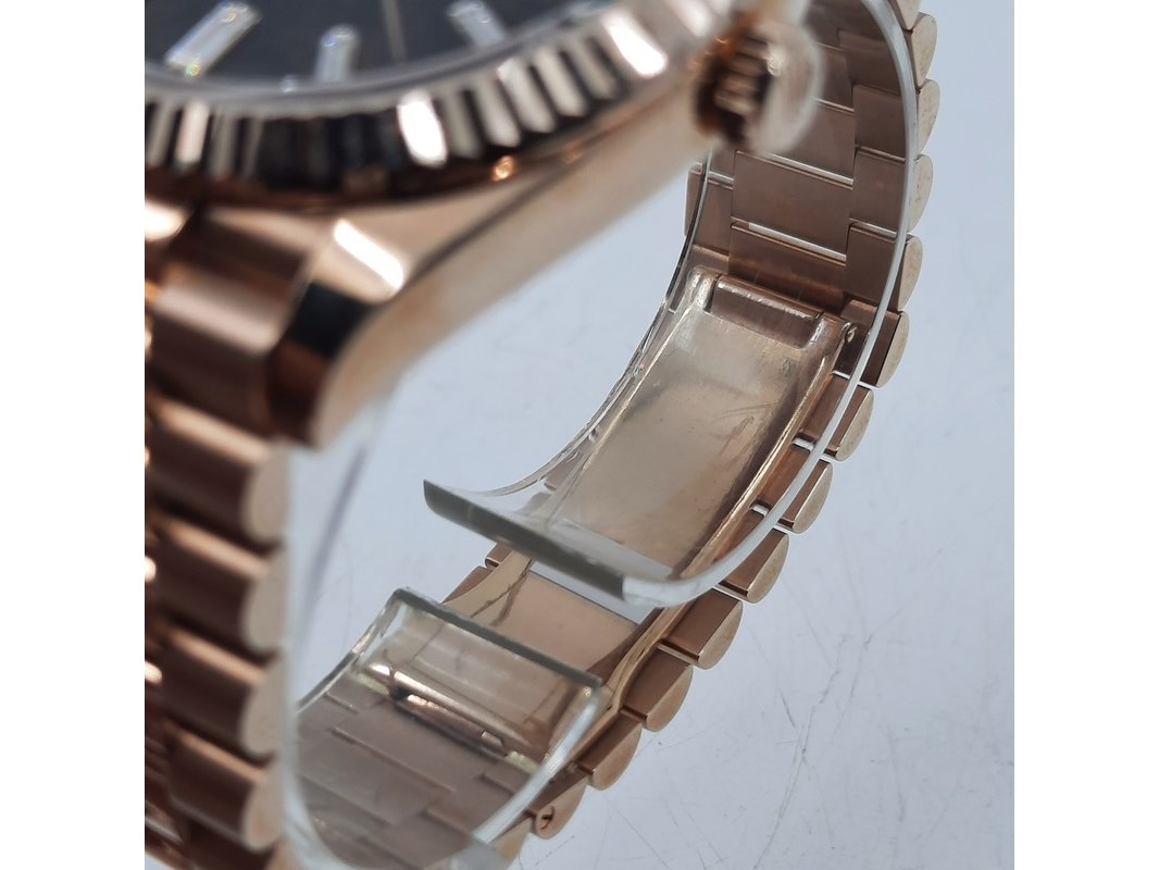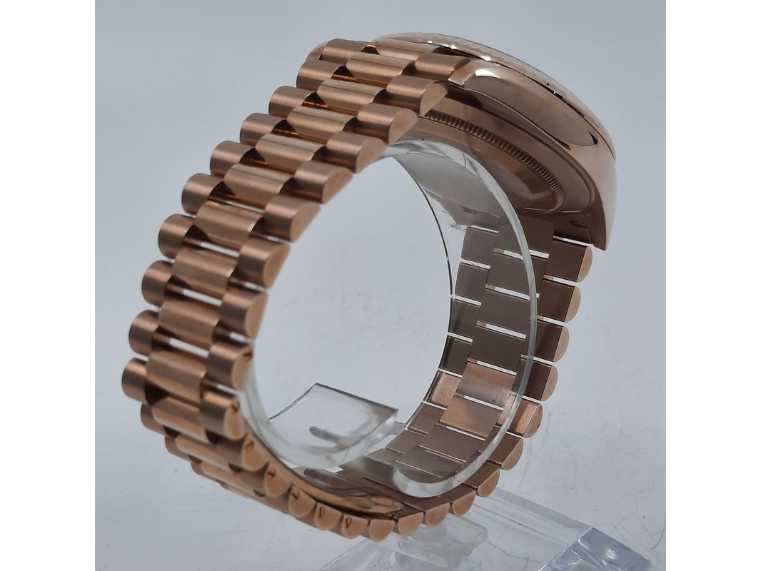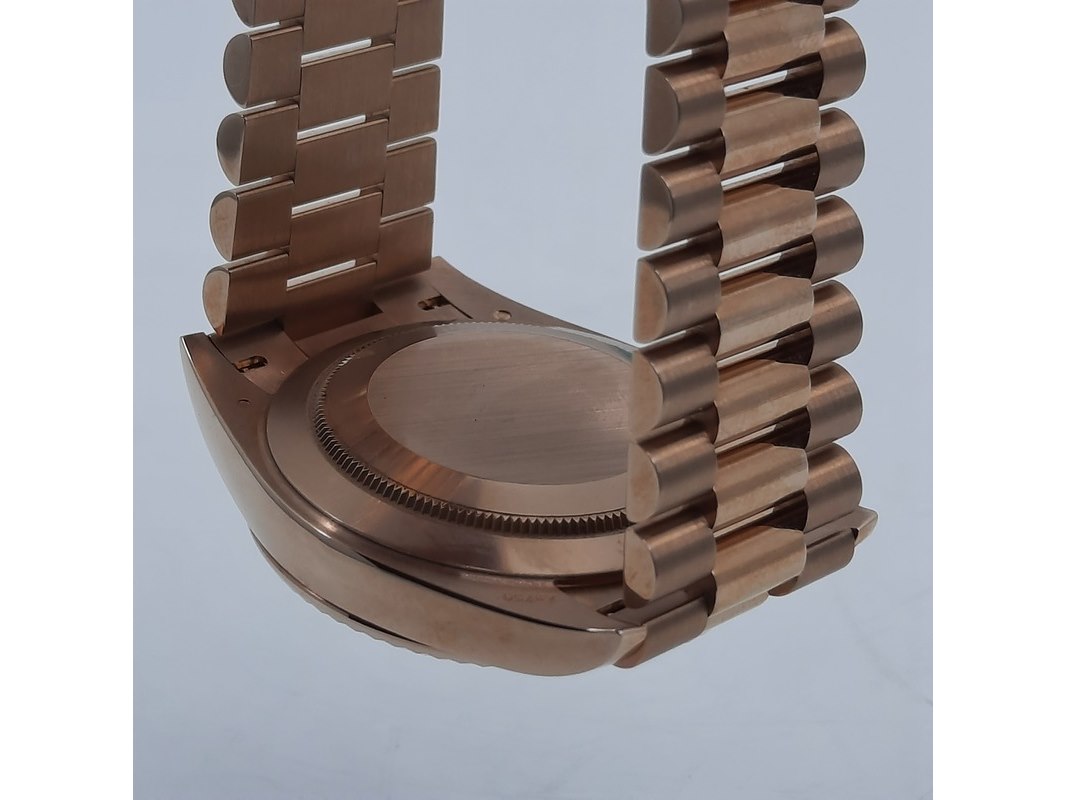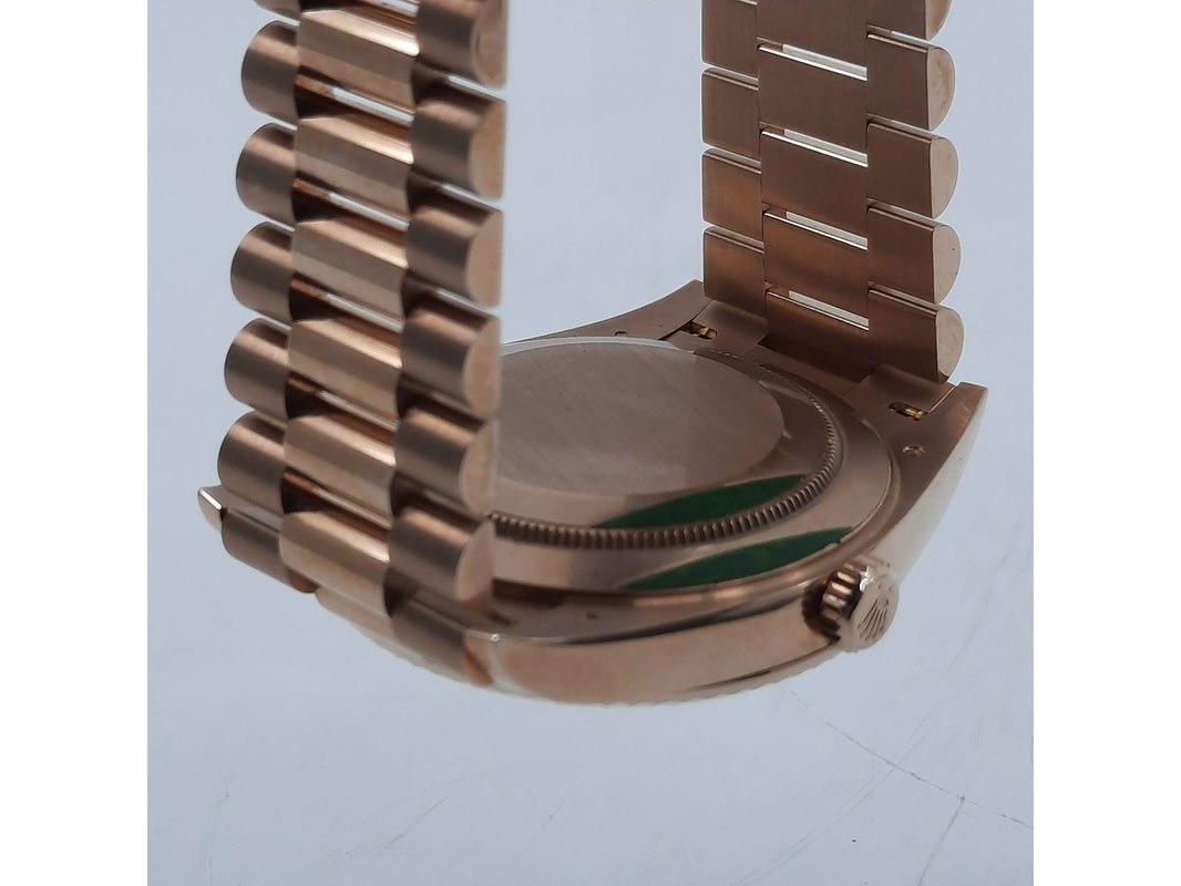 Merk: Rolex Product: Heren polshorloge Conditie: Gebruikt Specificaties: Een roségouden heren polshorloge, Rolex Day-Date (40) 228235. Met Eisenkiesl wijzerplaat, diamant baguette indices en roségouden President model band. Gehalte 'AU750', bruto gewicht ca. 203,6 gram. Inclusief doos en certificaat. Documentatie van 10-01-2022.