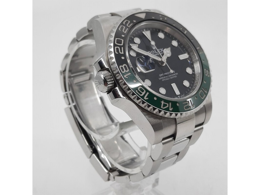 Merk: Rolex Product: Heren polshorloge Conditie: gebruikt Specificaties: Een stalen heren polshorloge, Rolex GMT Master II 126720. Met zwarte wijzerplaat, groen/zwarte bezel, datumaanduiding en stalen band met vouwsluiting. Kast nummer: W73943X2. Geen doos en geen certificaat.