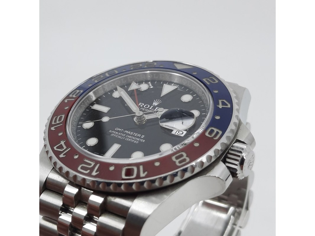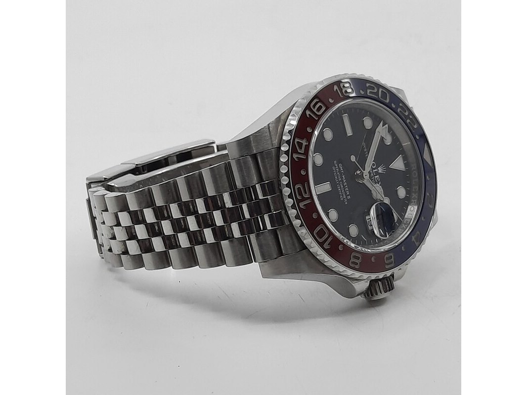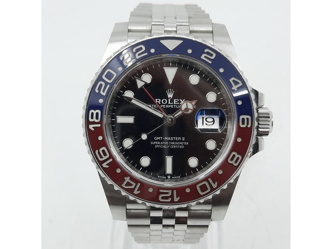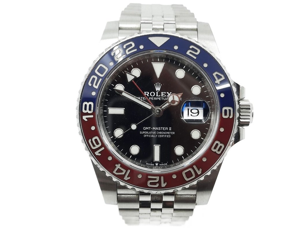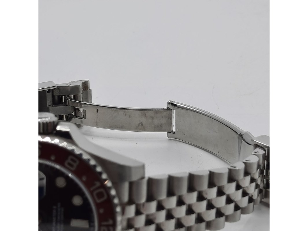 Merk: Rolex Product: Heren polshorloge Conditie: Gebruikt Specificaties: Een stalen heren polshorloge, Rolex GMT Master II 126710. Met zwarte wijzerplaat, rood/blauw lunet en Jubilee model band met vouwsluiting. Geen doos en geen certificaat.