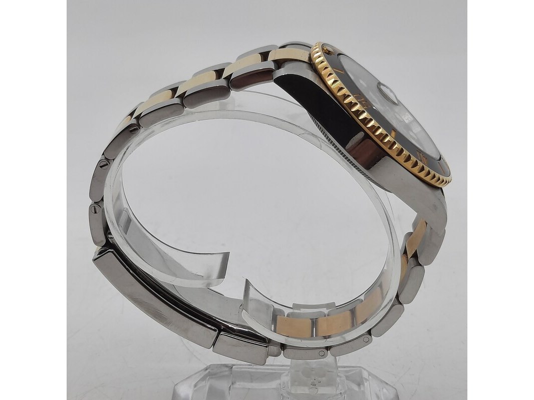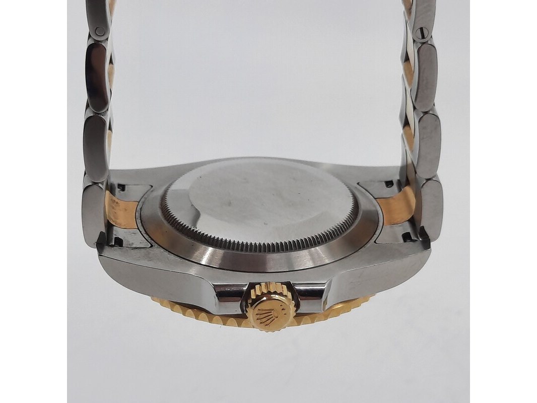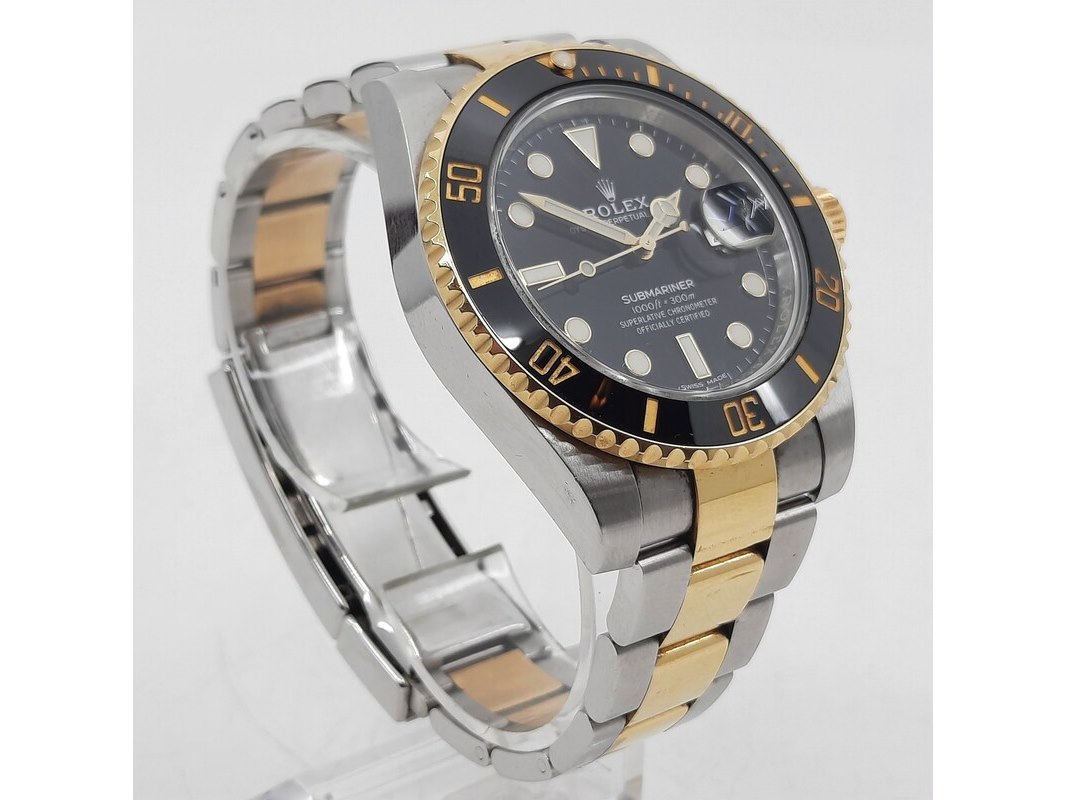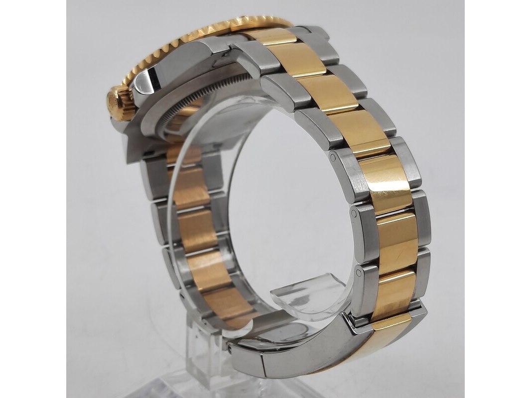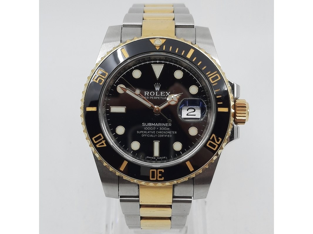 Merk: Rolex Product: Heren polshorloge Conditie: gebruikt Specificaties: Een staal met geelgouden heren polshorloge, Rolex Submariner 116613. Met zwarte keramische lunet, zwarte wijzerplaat met punt, lijn en pijlindex, automatisch uurwerk, kaliber 3135 en Oyster model goud met stalen band. Geen doos en geen certificaat.