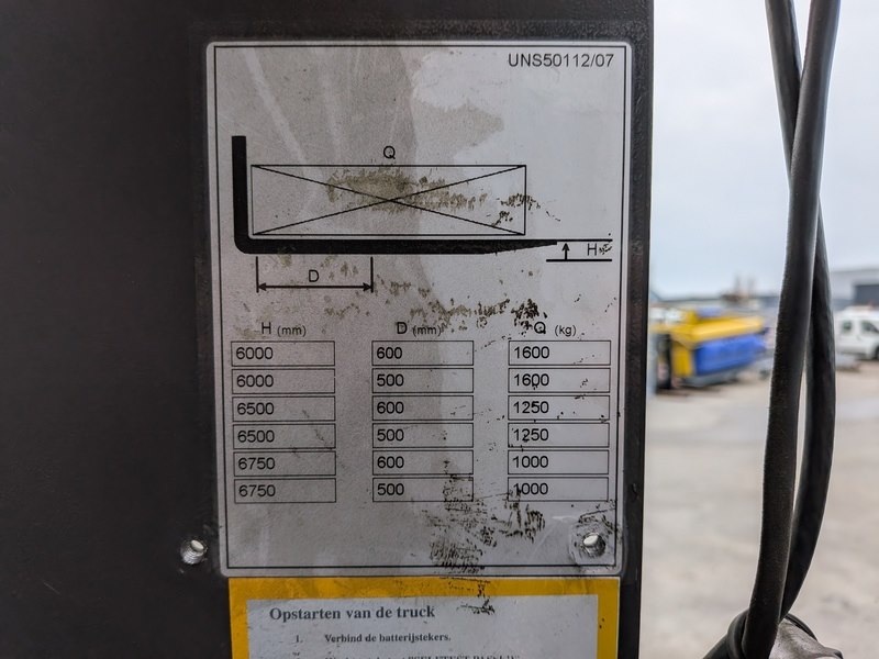 Merk: ATLET Product: (NS materiaal) Reachtruck BouwJaar: 2007 Conditie: Gebruikt Specificaties: Basiskenmerken Serienummer: 50112 Afgelezen tellerstand: 7.428 u. Technische gegevens Hefhoogte: 6.750 mm Masttype: Triplex (3-delig) Capaciteit: 1.600 kg Truckmassa: 2.250 kg (zonder accu) Aandrijving: Elektrisch