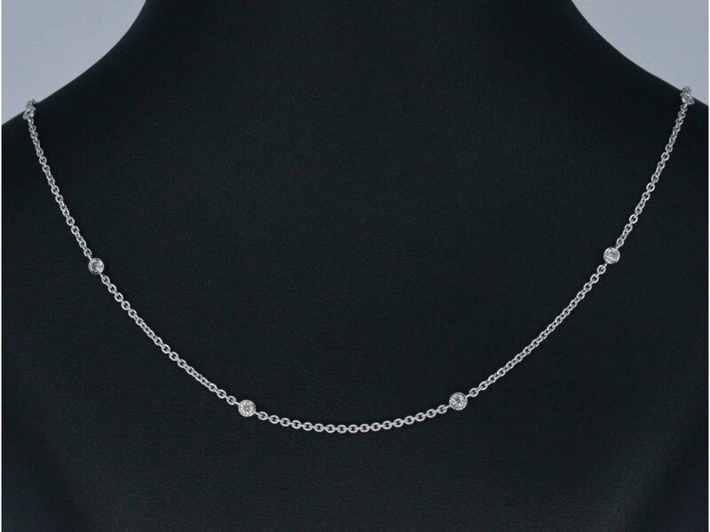 Product: Witgouden ketting met 8 briljant geslepen diamanten Specificaties: Diamant: Natuurlijk Slijpvorm: Briljant geslepen Gewicht (carat): 0.25 carat Kleur: F-G Zuiverheid: VS Slijpkwaliteit: Zeer mooi Juweel: ketting Gewicht: 4 gram Afmetingen/lengte: 42 - 42,5 cm(vestelbaar) Materiaal: 18K goud (750) Conditie: Nieuw Verpakking: Luxe sieradendoos Toelichting: De kwaliteit is overgenomen van het rapport behorend bij item. De waardebepaling is een beoordeling van een gecertificeerde diamantair, gebaseerd op consumentenprijzen. Consumentenprijs: € 4.148,-