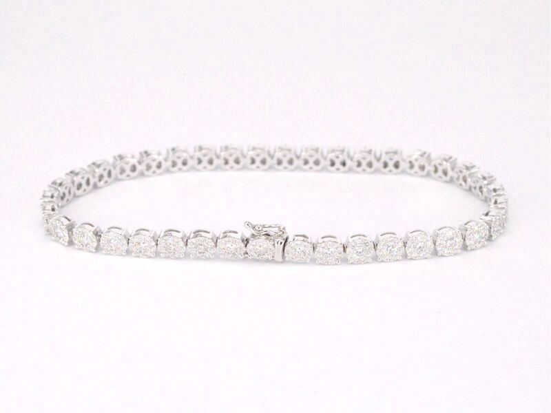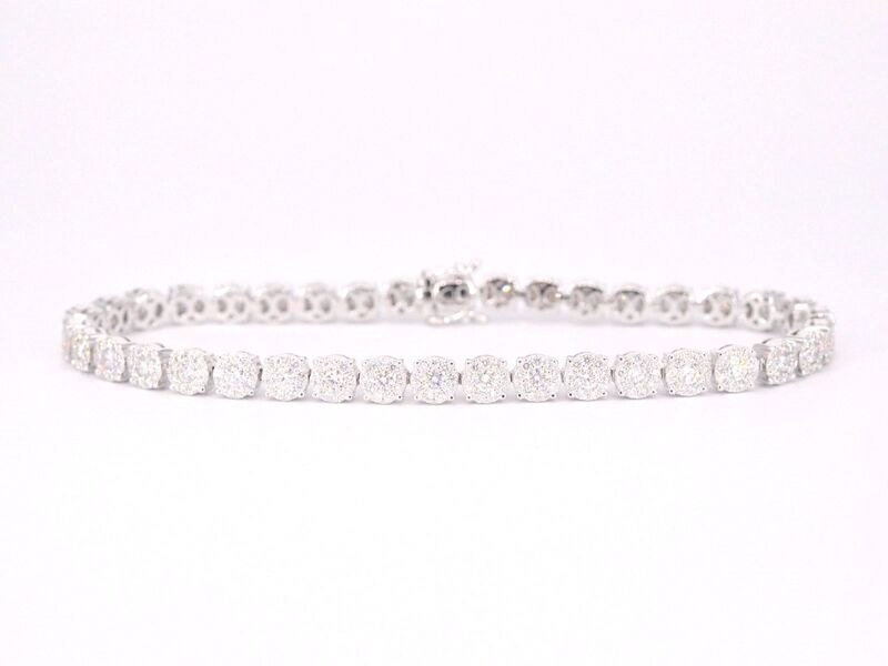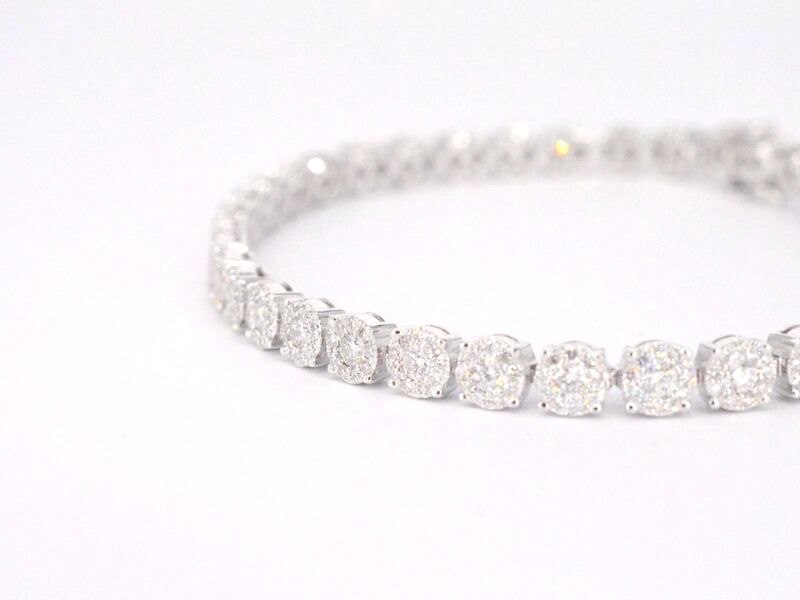 Product: Witgouden tennisarmband met 5.00 carat diamanten Specificaties: Diamant: natuurlijk Slijpvorm: Briljant geslepen Gewicht (carat): 5.00 carat Kleur: F-G Zuiverheid: VS Slijpkwaliteit: Excellent Juweel: Armband Gewicht: 13 gram Afmetingen/lengte: 17-18 cm Materiaal: 18K goud (750) Conditie: Nieuw Verpakking: Luxe sieradendoos Toelichting: De kwaliteit is overgenomen van het rapport behorend bij item. De waardebepaling is een beoordeling van een gecertificeerde diamantair, gebaseerd op consumentenprijzen. Consumentenprijs: € 24.098,-