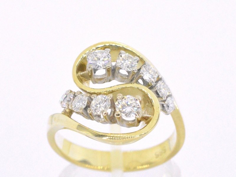 Product: Gouden ring met diamanten Specificaties: Diamant: Natuurlijk Aantal: 10 stuks Slijpvorm: Briljant geslepen Gewicht (carat): 0.60 carat Kleur: F-G Zuiverheid: VVS Slijpkwaliteit: Zeer mooi Juweel: Ring Gewicht: 5.7 gram Ringmaat (op maat gemaakt*): 54 (17.25 mm) Materiaal: 14K goud (585) Conditie: Zo goed als nieuw Verpakking: Luxe sieradendoos Toelichting: De kwaliteit is overgenomen van het rapport behorend bij item. De waardebepaling is een beoordeling van een gecertificeerde diamantair, gebaseerd op consumentenprijzen. Consumentenprijs: € 7.700,- *Ringen kunnen als het mogelijk is op maat gemaakt worden.