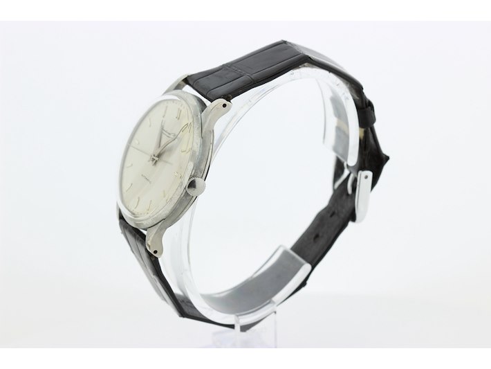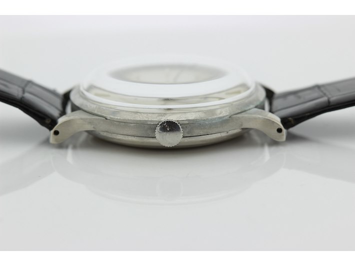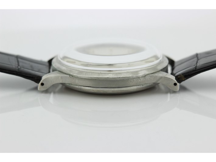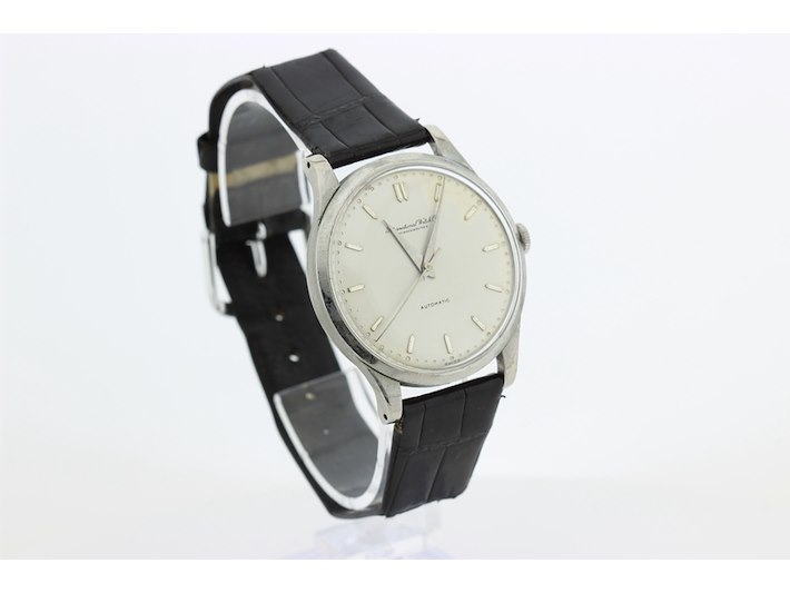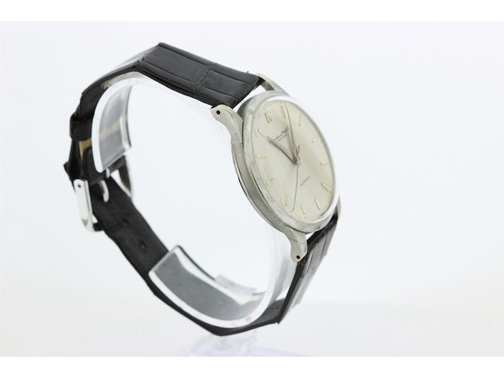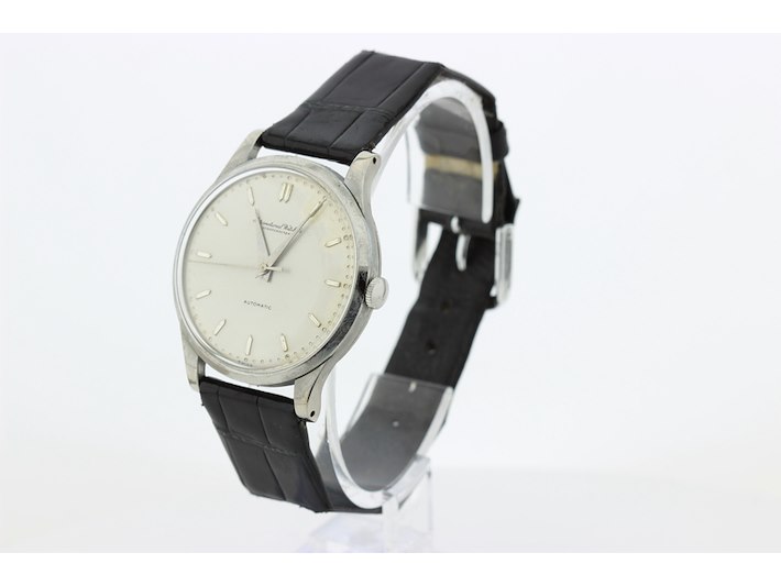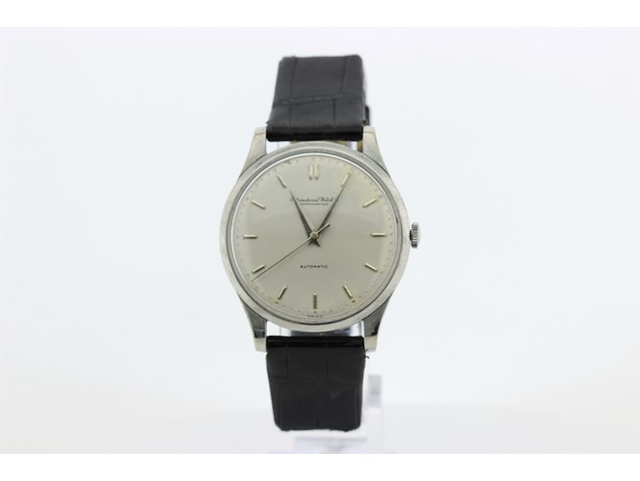 Merk: IWC Product: Heren polshorloge Kleur: grijze wijzerplaat Materiaal: RVS Afmeting: 35 mm. BouwJaar: 60er jaren Conditie: gebruikt Specificaties: Vintage IWC stalen heren polshorloge met grijze wijzerplaat voorzien van een leren band en stalen gesp, nieuw plexiglas en revisie door eigen horlogemaker. Loopt onregelmatig, revisie aan te bevelen. Wij garanderen de echtheid ervan uitdrukkelijk, en u kunt deze bij een IWC verkoper laten verifiëren. Waterdichtheid niet gegarandeerd mits vermeld. Inclusief neutrale horloge verpakking en eigen certificaat van echtheid. Functies: Uur, minuut en seconde Uurwerktype: mechanisch Hoogte: 12 mm Polsomvang: 18 cm