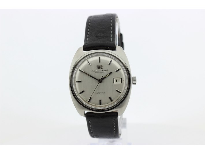 Merk: IWC Product: Heren polshorloge Kleur: grijze wijzerplaat Materiaal: RVS Afmeting: 40 x 36 mm. BouwJaar: 60er jaren Conditie: gebruikt Specificaties: Vintage IWC stalen heren polshorloge met grijze wijzerplaat voorzien van een leren band en stalen gesp, revisie door eigen horlogemaker. Loopt perfect -3 seconden per dag. Wij garanderen de echtheid ervan uitdrukkelijk, en u kunt deze bij een IWC verkoper laten verifiëren. Waterdichtheid niet gegarandeerd mits vermeld. Inclusief neutrale horloge verpakking en eigen certificaat van echtheid. Functies: Uur, datum, minuut en seconde Uurwerktype: automatisch Hoogte: 11 mm Polsomvang: 18 cm