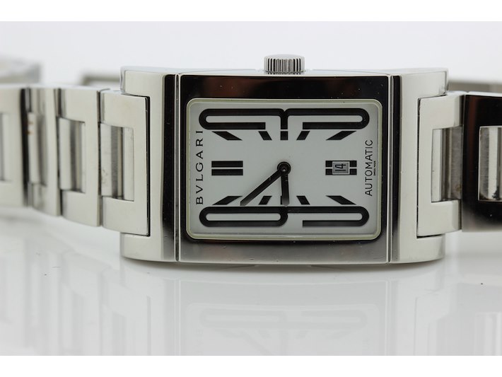 Merk: Bvlgari Product: Heren polshorloge Kleur: witte wijzerplaat Materiaal: RVS Afmeting: 45 x 26 mm. BouwJaar: ca 2000 Conditie: gebruikt Specificaties: Bvlgari stalen heren polshorloge met witte wijzerplaat met stalen band in zeer goede staat. Onbeschadigd saffierglas en revisie door eigen horlogemaker. Loopt goed -13 seconden per dag. Wij garanderen de echtheid ervan uitdrukkelijk, en u kunt deze bij een Bvlgari verkoper laten verifiëren. Waterdichtheid niet gegarandeerd mits vermeld. Inclusief originele overdoos, doos (scharnier stuk) en eigen certificaat van echtheid. Serienummer: L3101 Functies: Uur, minuut en datum Uurwerktype: automatisch Hoogte: 8,8 mm Polsomvang: 18 cm