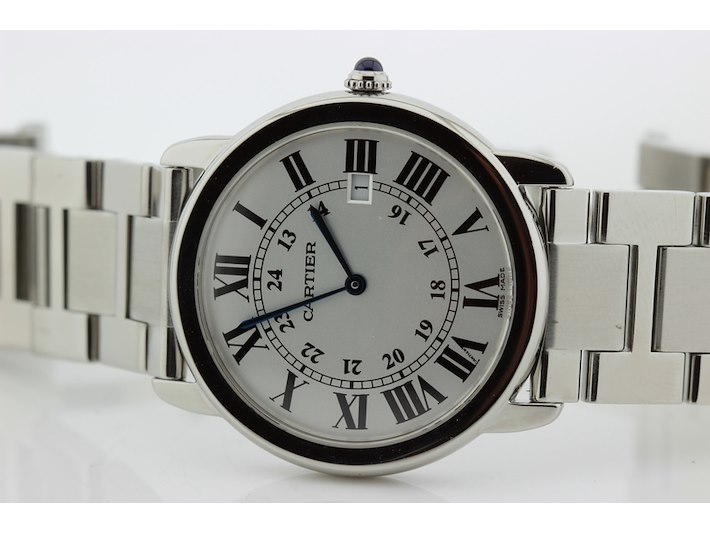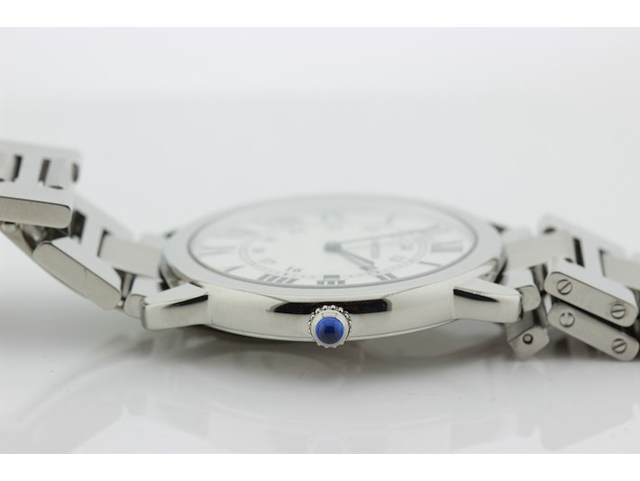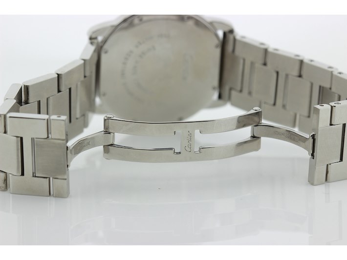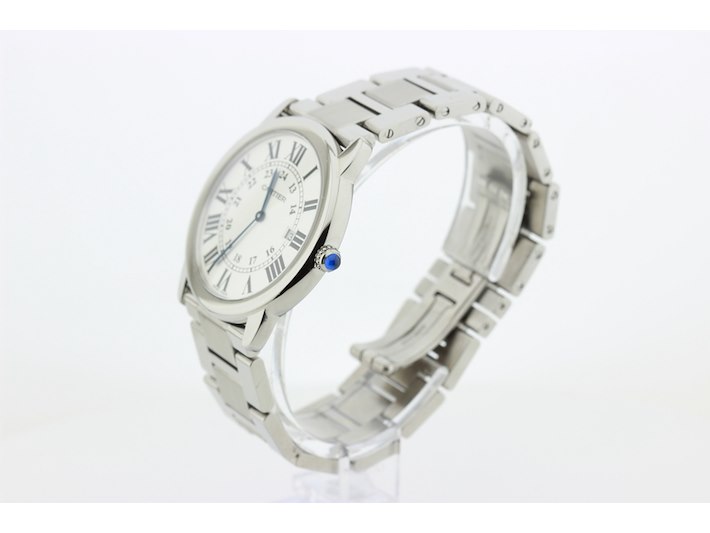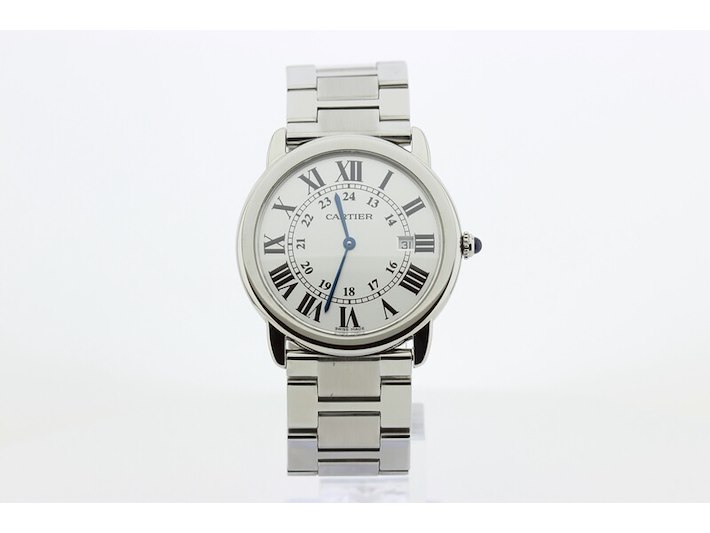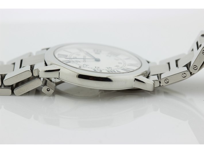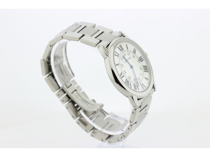 Merk: Cartier Product: Heren polshorloge Kleur: witte wijzerplaat Materiaal: RVS Afmeting: 36 mm. BouwJaar: ca. 2015 Conditie: gebruikt Specificaties: Cartier stalen heren polshorloge, model Ronde Solo de Cartier, met witte wijzerplaat met stalen band in zeer goede staat. Onbeschadigd saffierglas. Wij garanderen de echtheid ervan uitdrukkelijk, en u kunt deze bij een Cartier verkoper laten verifiëren. Waterdichtheid niet gegarandeerd mits vermeld. Inclusief originele overdoos, doos en eigen certificaat van echtheid. Serienummer: 729889PX Functies: Uur, minuut en datum Uurwerktype: quartz Hoogte: 6,6 mm Polsomvang: 17 cm