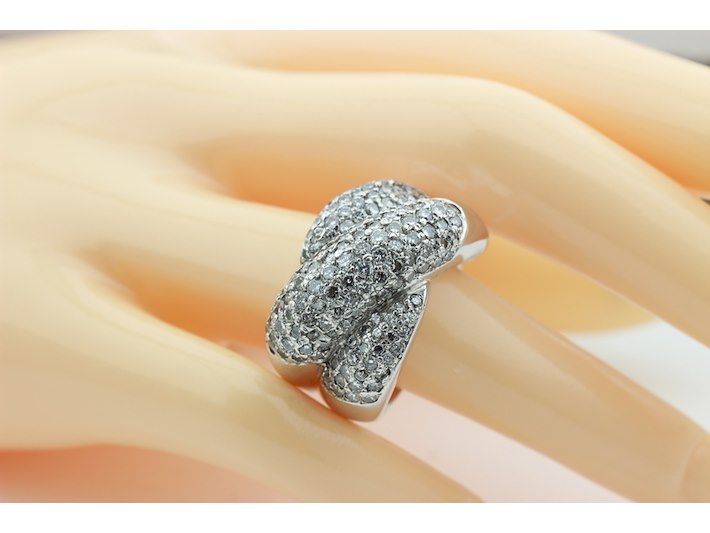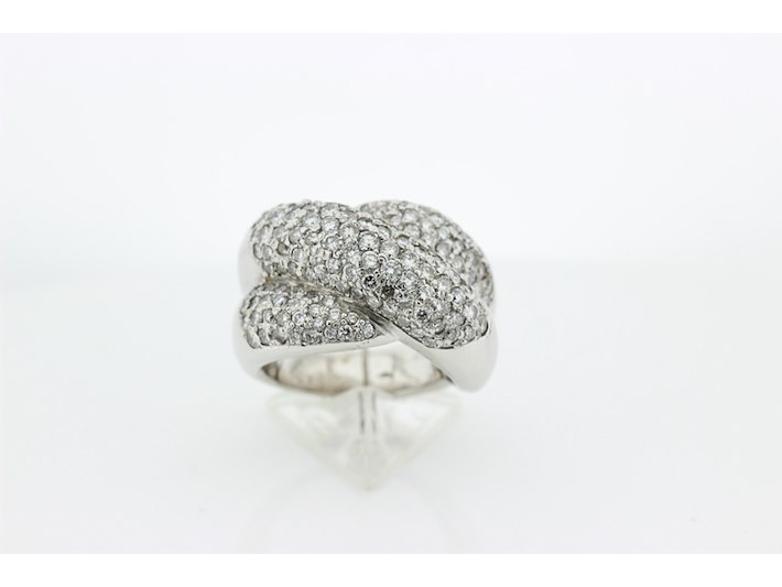 Product: Dames ring Materiaal: 14 karaat witgoud Afmeting: 22,6 gram Conditie: gebruikt Specificaties: Fantasiering gezet met 153 als briljant geslepen diamanten met een gewicht van 5,45 crt. Kleur G en kwaliteit SI. Inclusief een ringen doos en een taxatierapport met een verzekeringswaarde van € 13550,-- afgegeven door een gediplomeerd taxateur. Edelsteen: Natuurlijke diamant Aantal: 3/8 Slijpvorm: Briljant Gewicht: 5,40 karaat Kleur: G Zuiverheid: SI ringmaat: 18