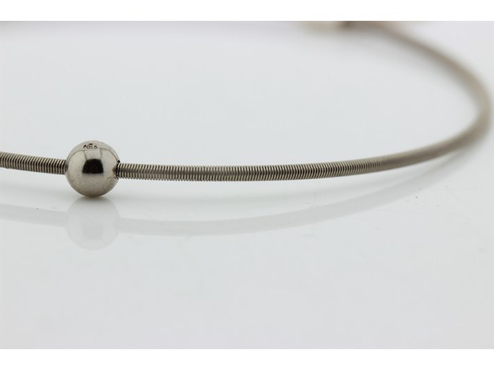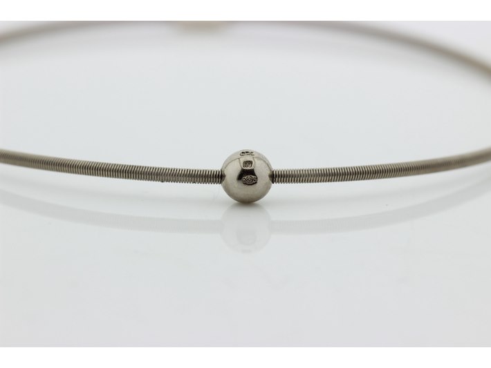Merk: Niessing Product: Dames armband Materiaal: 18 karaat witgoud Afmeting: 2,8 gram Conditie: nieuw Specificaties: Niesing fine grey kogel armband met dikte 1.4 mm en diamater 62,5 mm. Echtheid gegarandeerd, kan bij elk Niessing verkooppunt gecontroleerd laten worden. Inclusief een armbandendoos en een taxatierapport met een verzekeringswaarde van € 1165,-- (winkelprijs) afgegeven door een gediplomeerd taxateur.