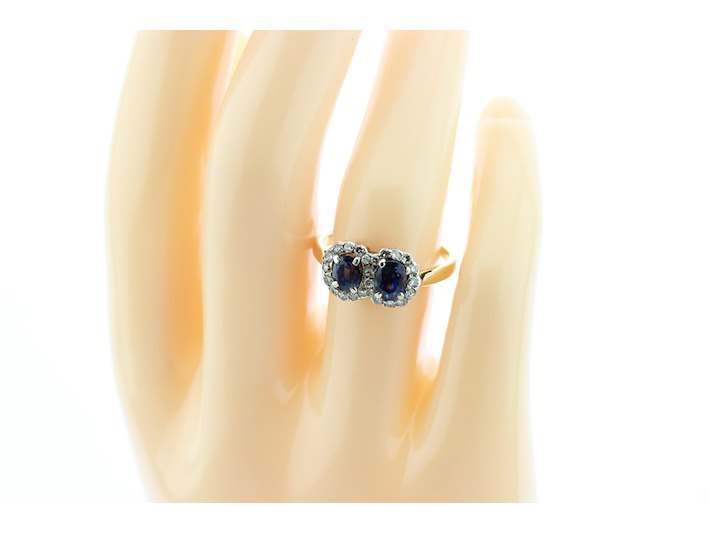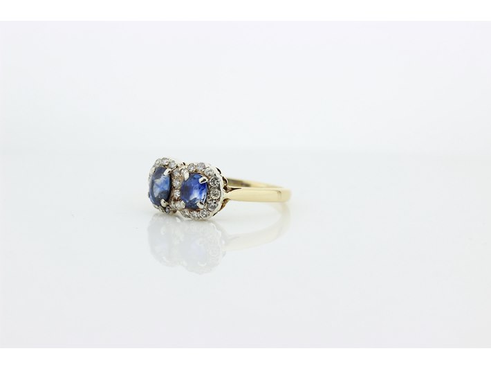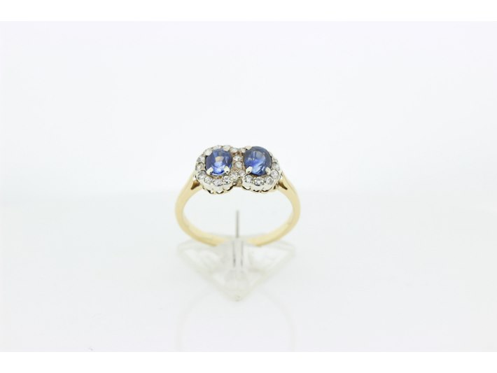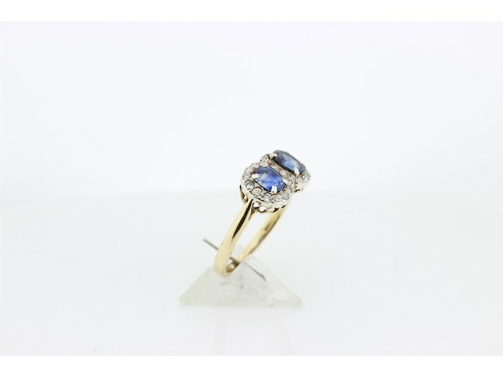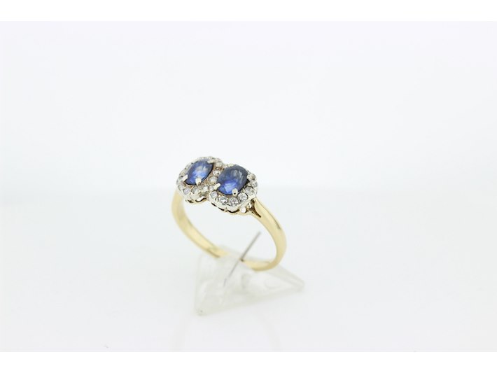 Product: ring Materiaal: 14karaat Afmeting: 2,75 gram Conditie: gebruikt Specificaties: Bi-color 14 karaats antieke rozetring gezet 2 naturlijke saffieren met een gewicht van ca. 0,90 crt. Hier omheen zijn 25 als briljant geslepen diamanten gezet met een gewicht van ca. 0.25 crt, kleur H, kwaliteit SI. Inclusief een ringendoos en een taxatierapport met een verzekeringswaarde van € 1850,-- afgegeven door een gediplomeerd taxateur. Edelsteen: Natuurlijke saffier/diamant Aantal: 2/25 Slijpvorm: Ovaal/briljant Gewicht: 0,90 crt./0,25 crt Kleur: H Zuiverheid: SI Ringmaat: 17,5