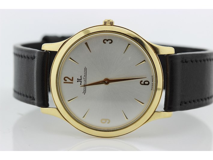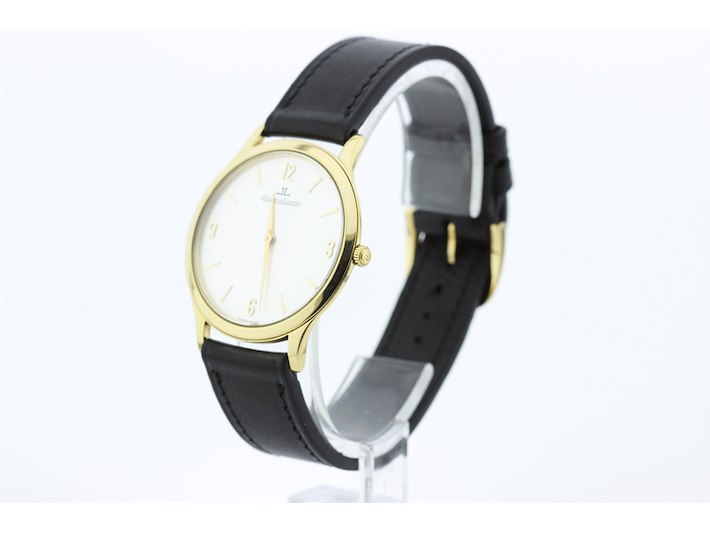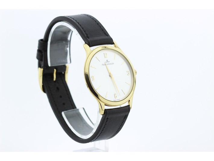 Merk: Jaeger Lecoultre Product: Heren polshorloge Kleur: grijze wijzerplaat Materiaal: 18 karaat geelgoud Afmeting: 34 mm. BouwJaar: 2010 Conditie: gebruikt Specificaties: Jaeger lecoultre Master control ultra plat 18 karaats geelgouden heren polshorloge met grijze wijzerplaat voorzien van een leren band en 18 karaats geelgouden JLC gesp. Loopt perfect +7 seconden per dag. Wij garanderen de echtheid ervan uitdrukkelijk, en u kunt deze bij een JLC verkoper laten verifiëren. Inclusief eigen certificaat van echtheid. Functies: Uur en minuut Uurwerktype: mechanisch Hoogte: 5 mm Polsomvang: 18 cm