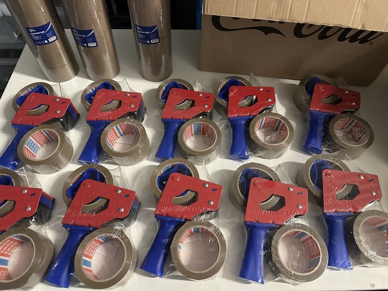 Merk: - Product: 10x taperoller incl. 2 rollen tape + 18x rollen bruin tape + 36x doorzichtige tape Conditie: Nieuw Specificaties: 10x Taperoller met 2 bruine 18x bruine tape 36x acryl doorzichtige tape Ideaal voor elk magazijn, allen nog nieuw / gesealed