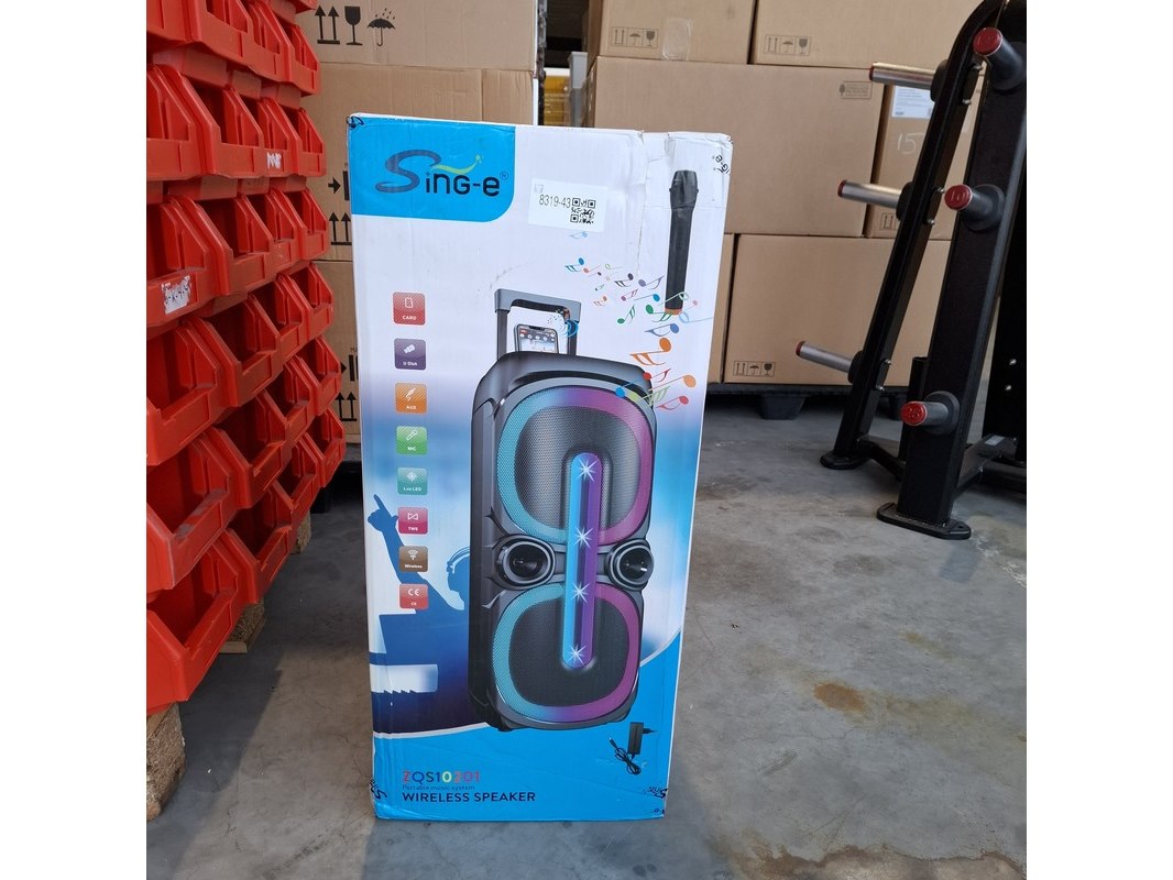 Merk: Sing-e Product: Geluidsbox Conditie: Nieuw Specificaties: 10 inch x2, output power 30W x2