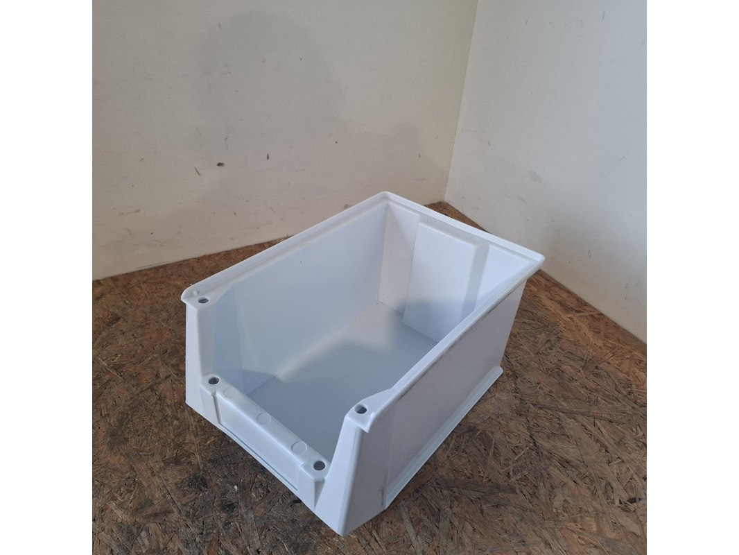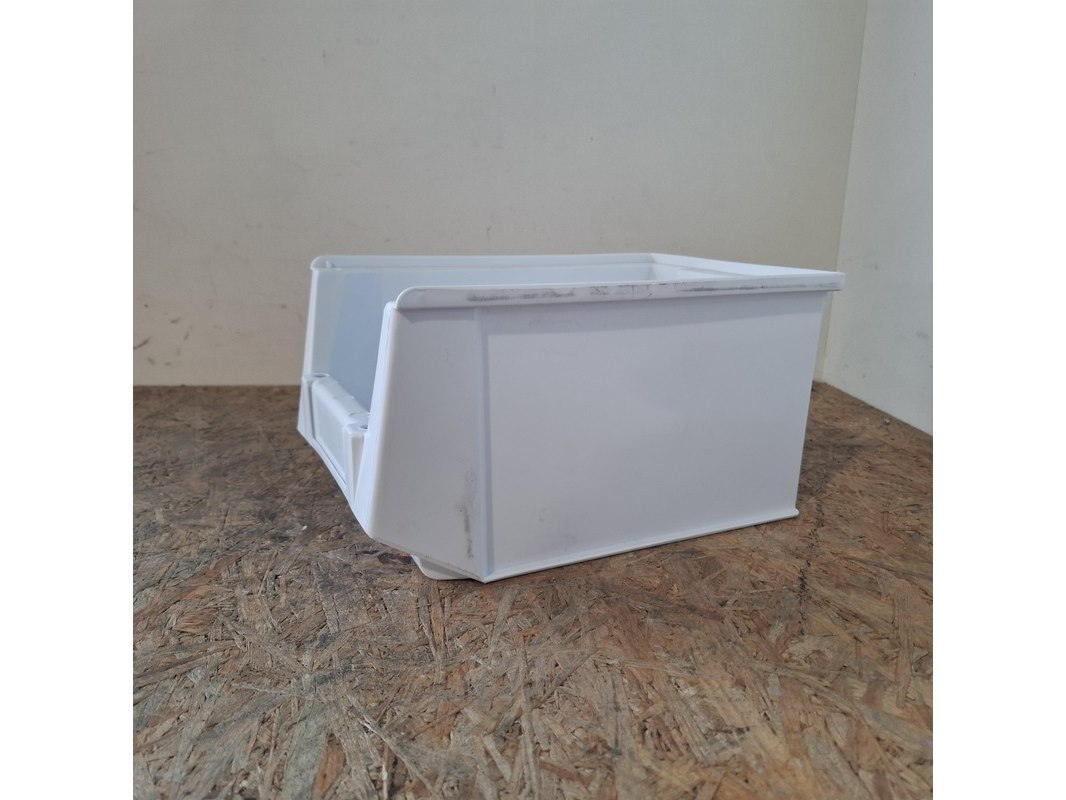 Product: Magazijnbakken met grijp opening Kleur: Wit Materiaal: Kunststof Afmeting: ca 30x20x15 cm Conditie: Gebruikt Specificaties: Nette en slagvaste magazijnbakken voorzien van etikethouder en goed stapelbaar exclusief pallet