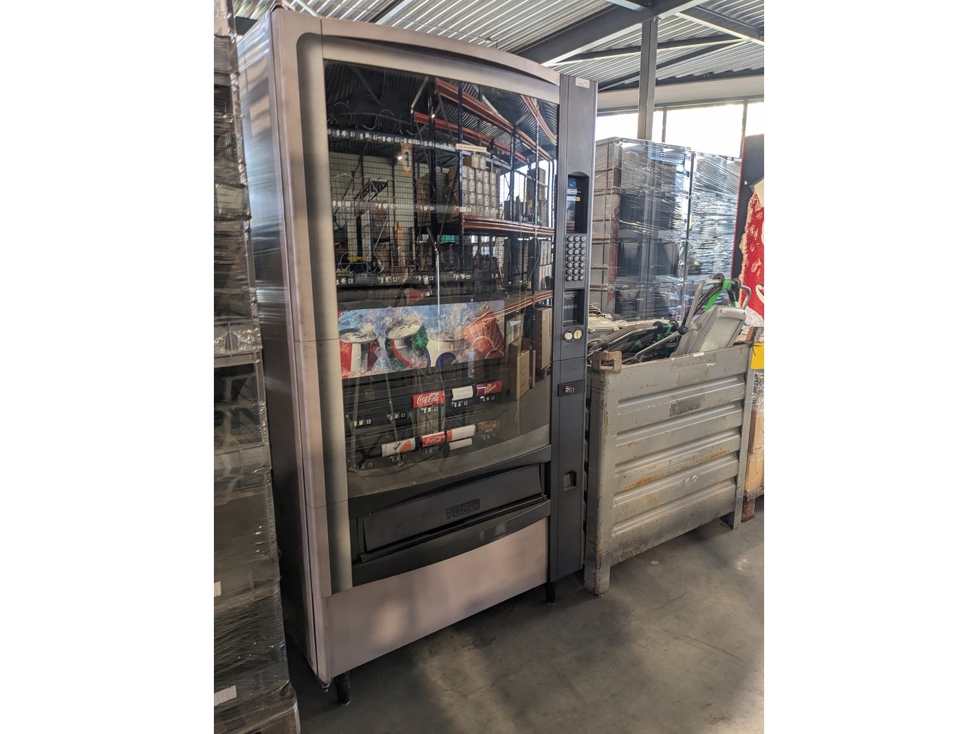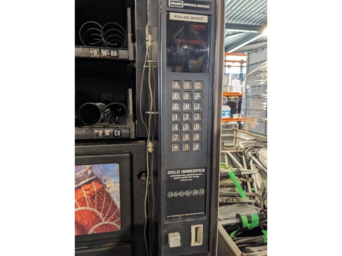 Merk: Crane National Vendors Product: Vending machine voor snacks en drinken Afmeting: hxbxd ca. 184x101x90 cm Conditie: Gebruikt Specificaties: 240 V, Inclusief sleutel